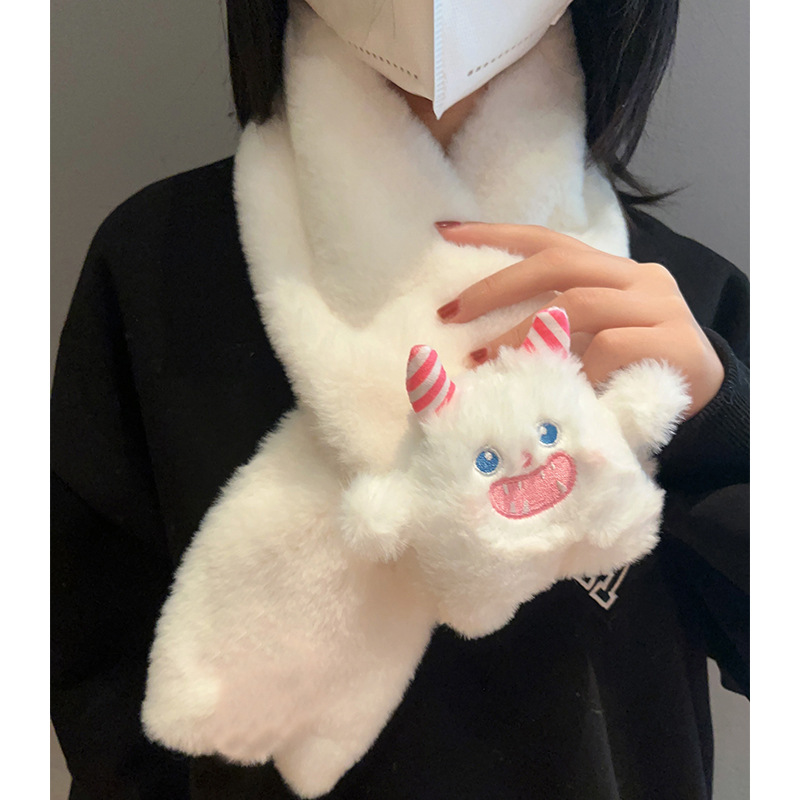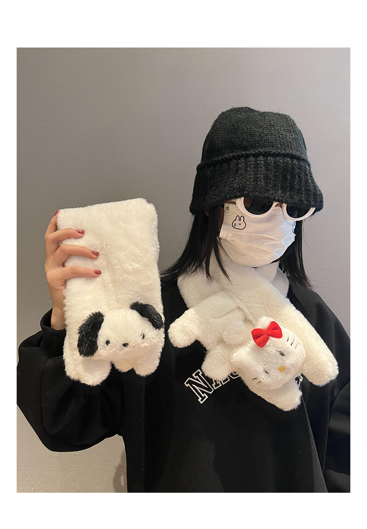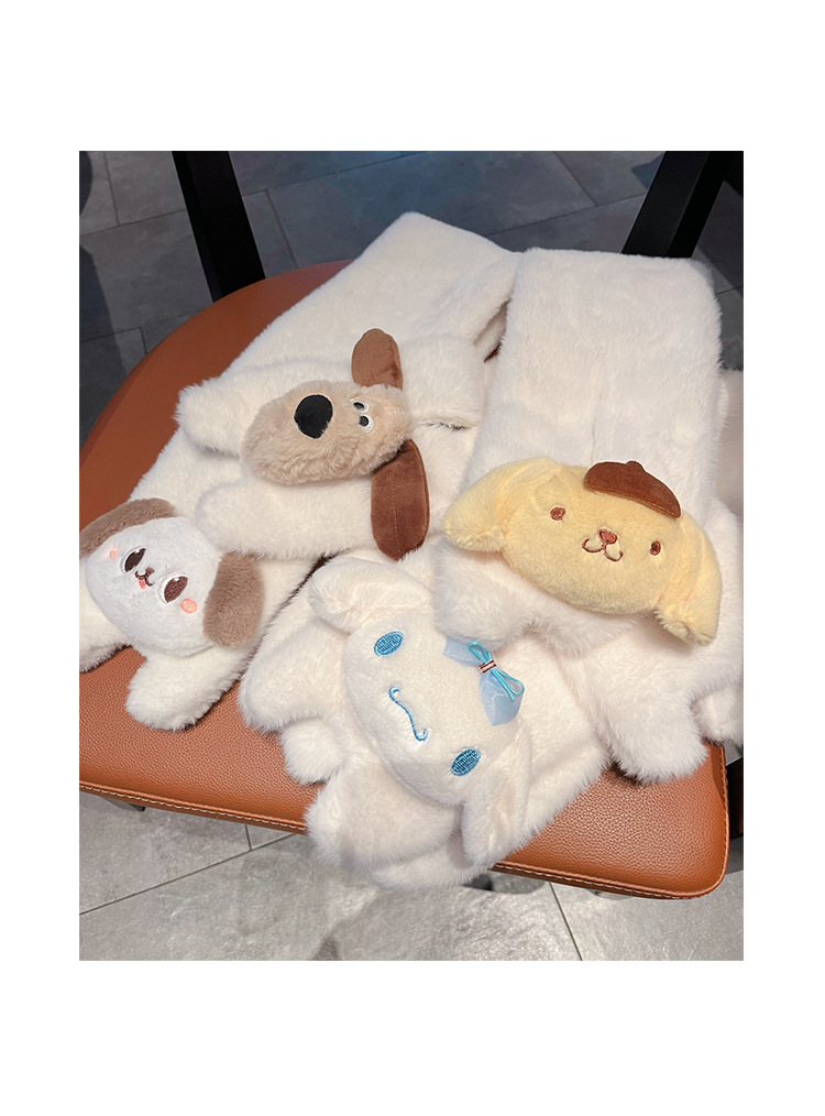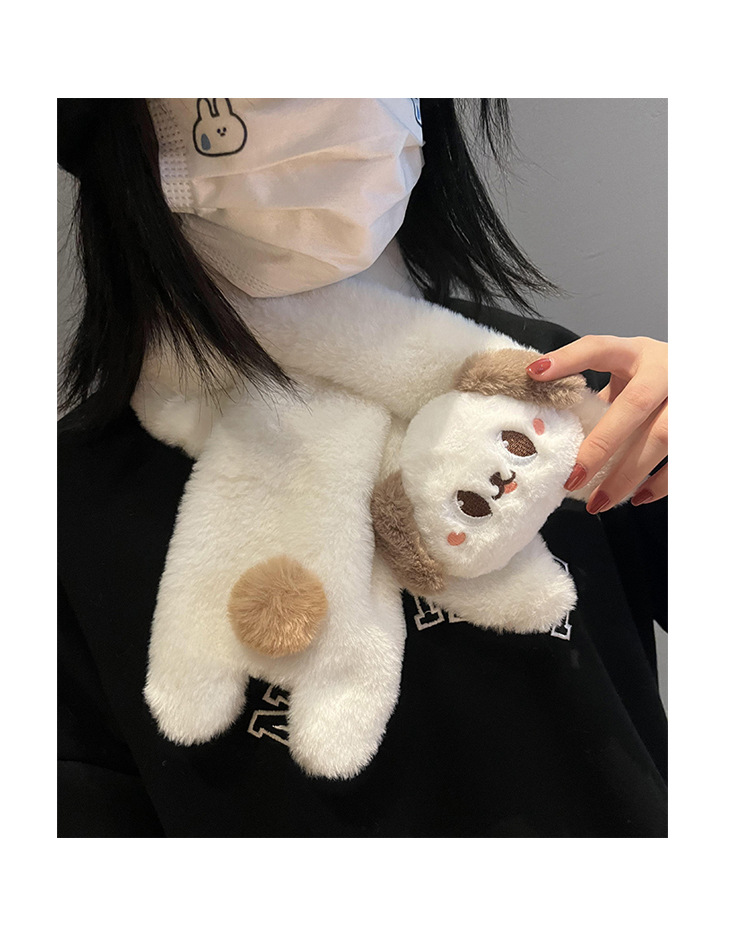 귀여운 강아지 봉제 스카프 겨울 여성 2023 새로운 만화 모피 따뜻한 학생 스카프
