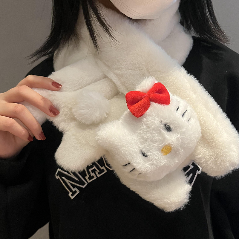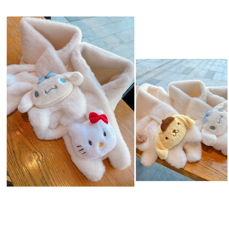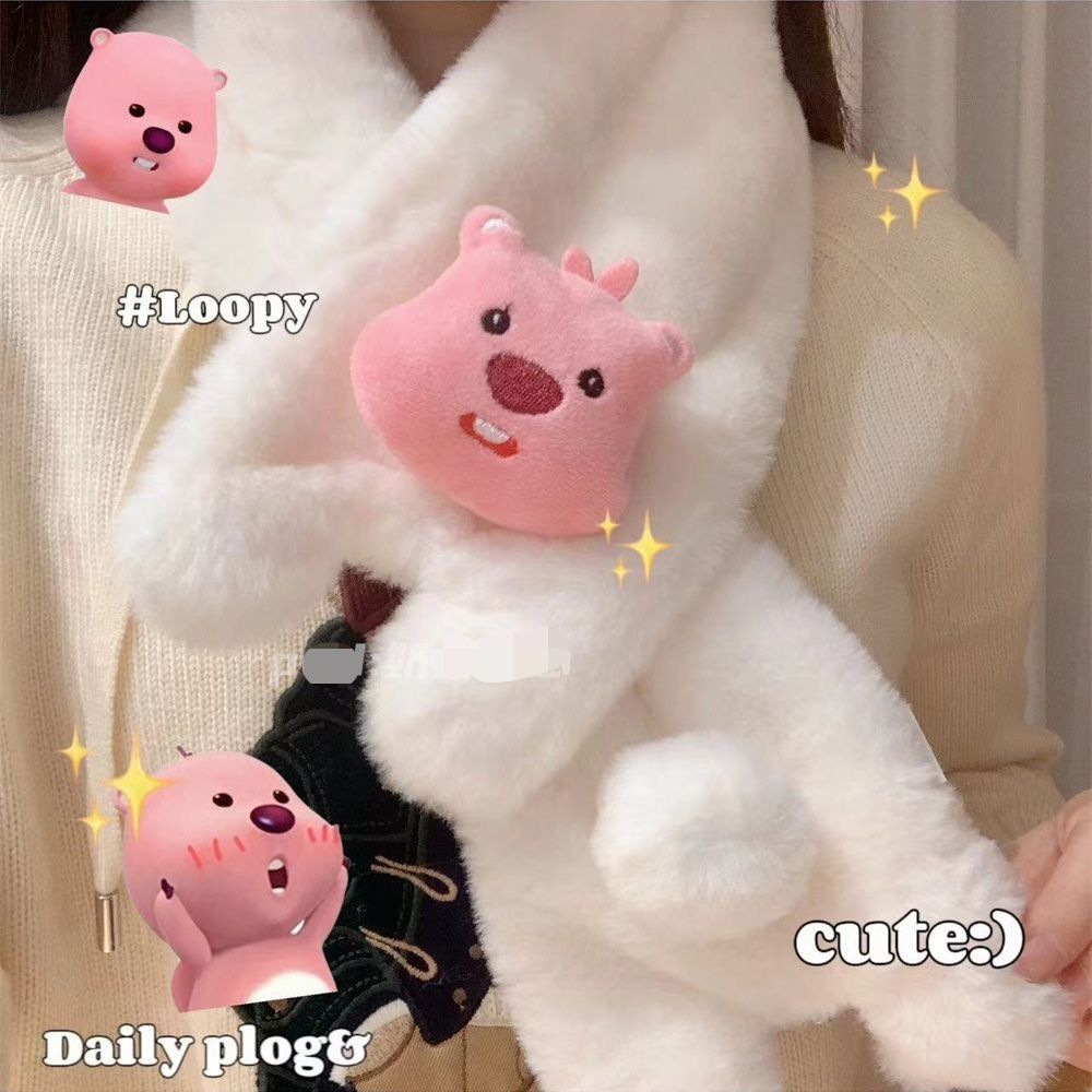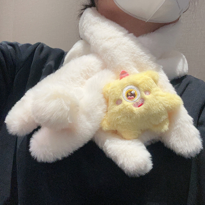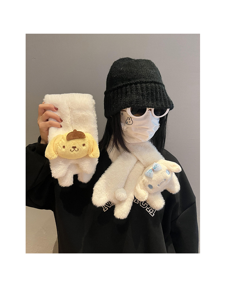 귀여운 강아지 봉제 스카프 겨울 여성 2023 새로운 만화 모피 따뜻한 학생 스카프