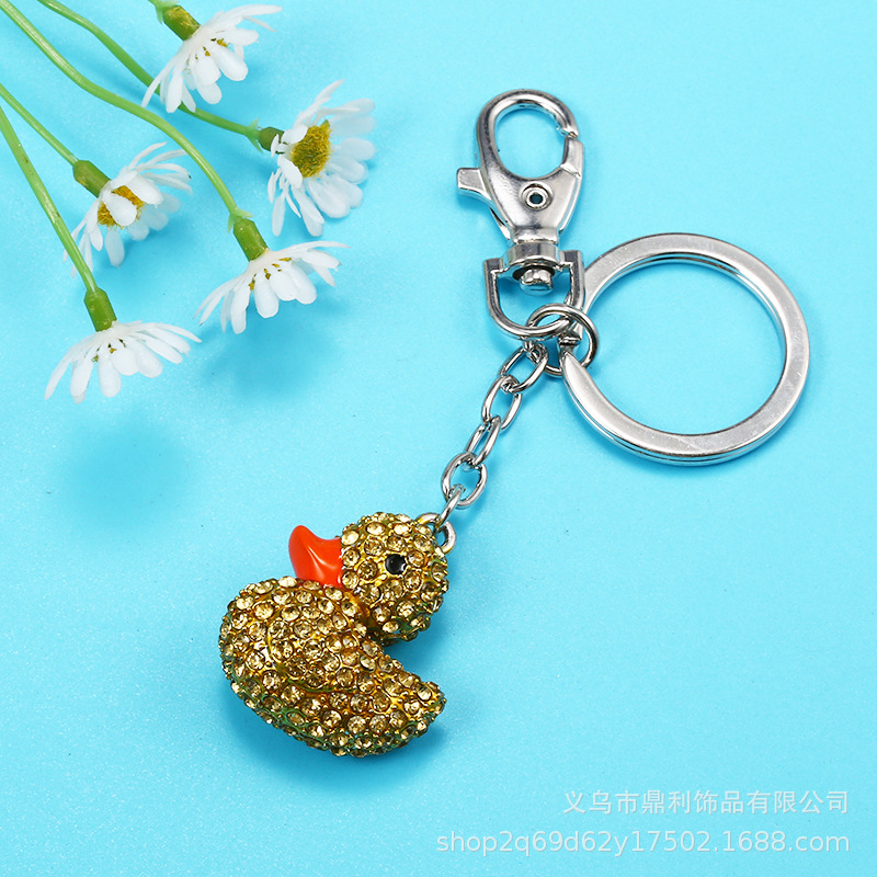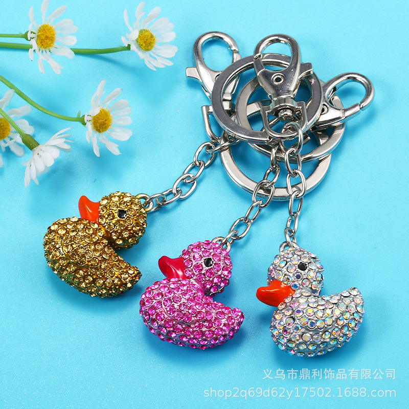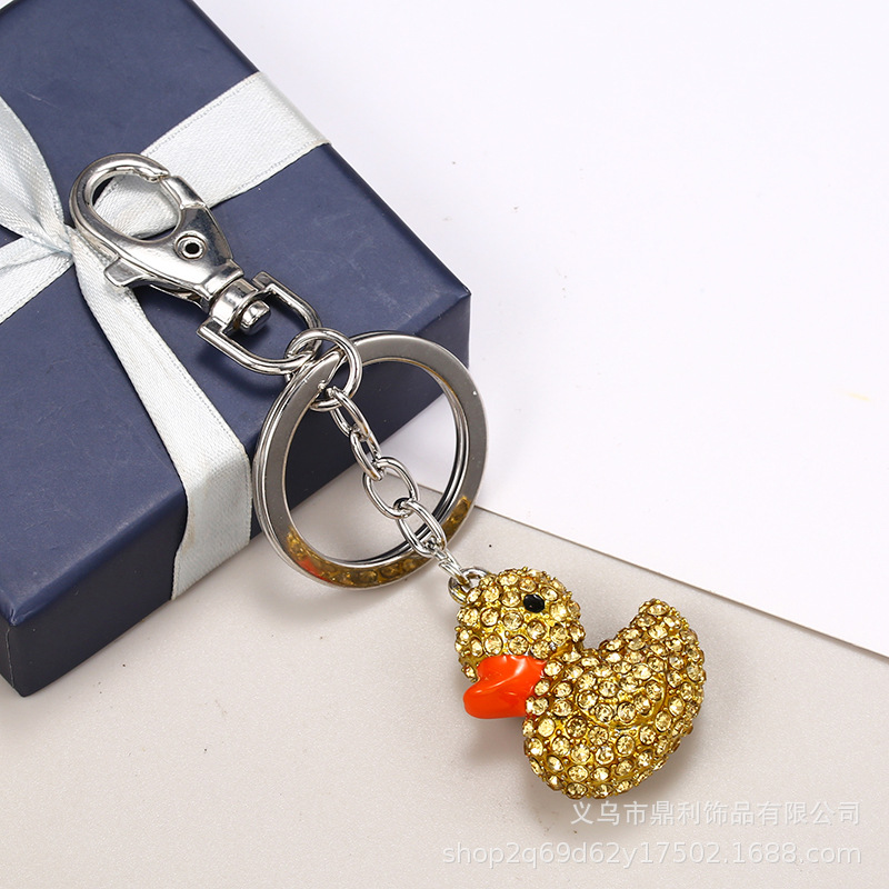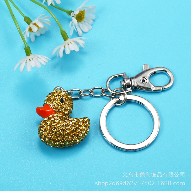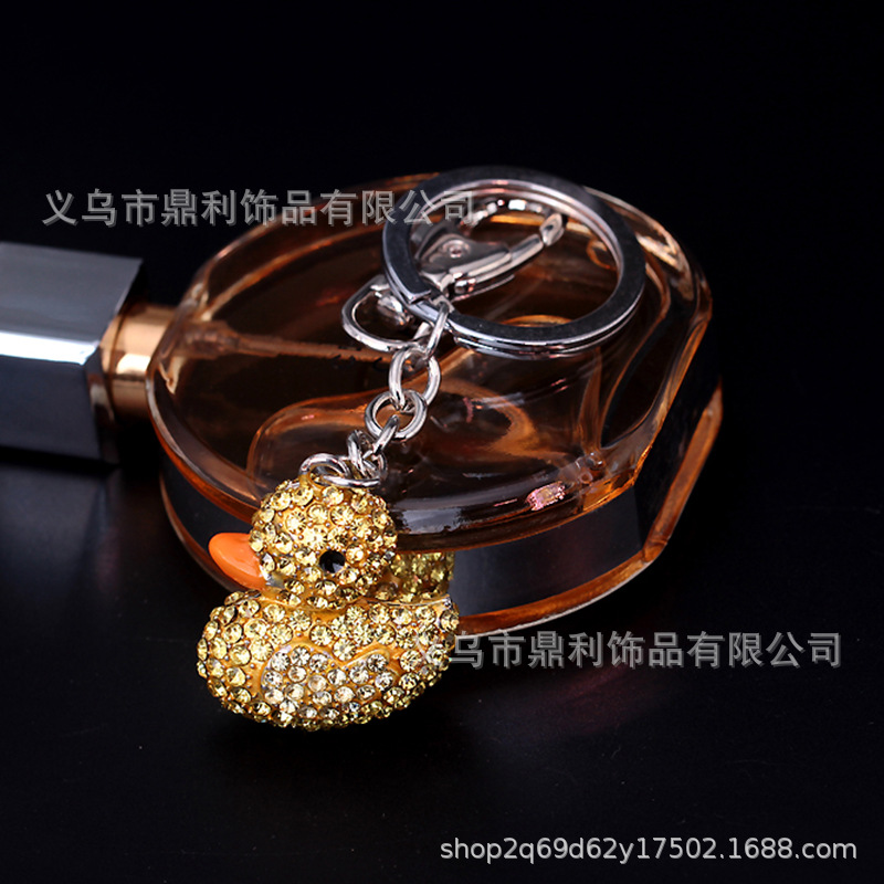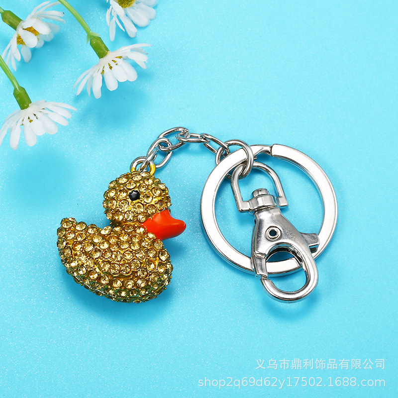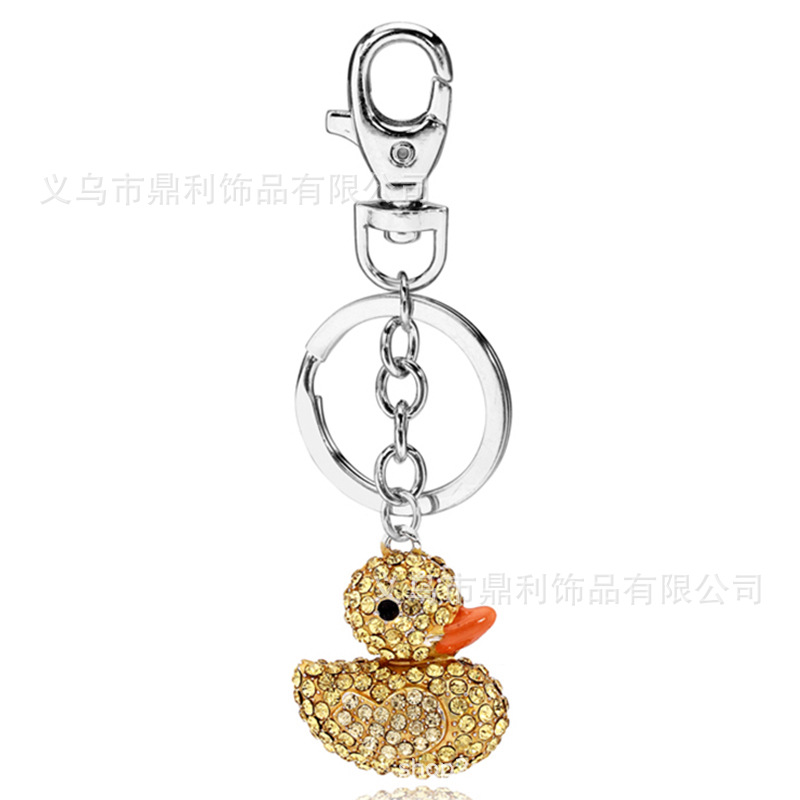 한국식 황금 인기 다이아몬드 박힌 노란 오리 호이스팅 키 체인 토끼 년 여성 가방 펜던트 자동차 액세서리 펜던트스토어 가기