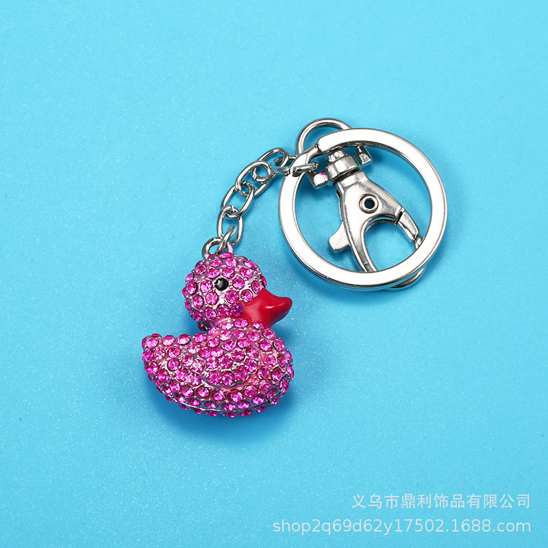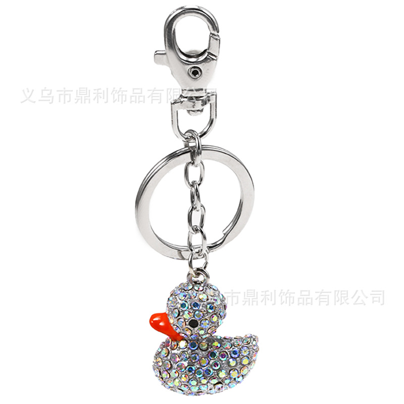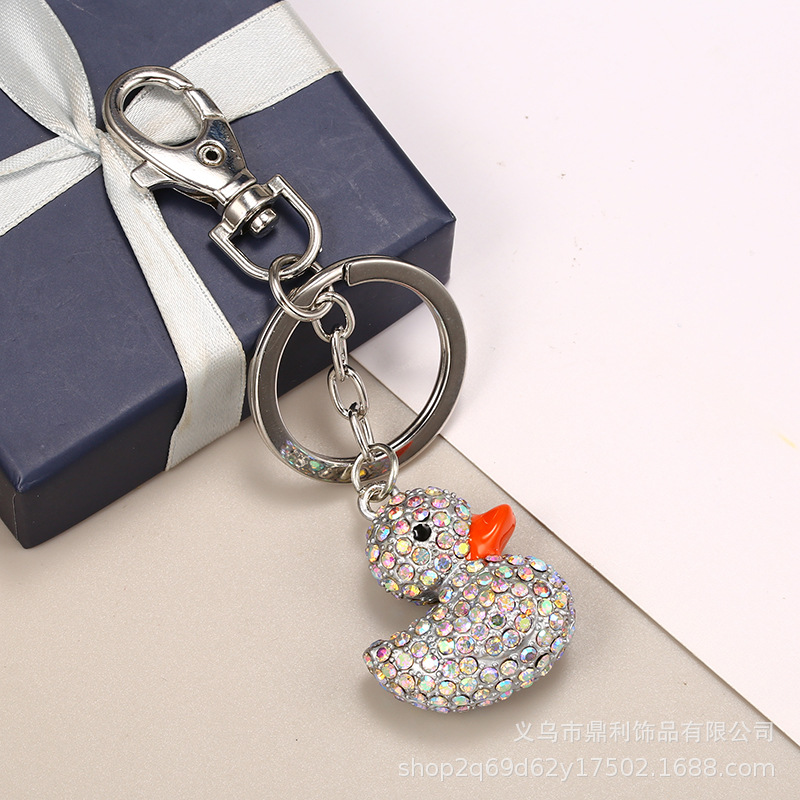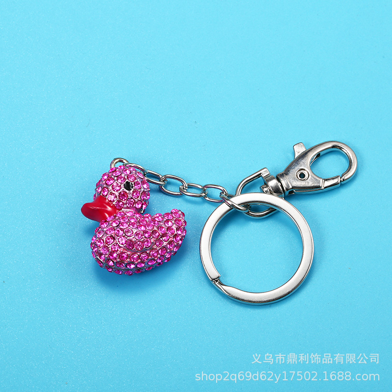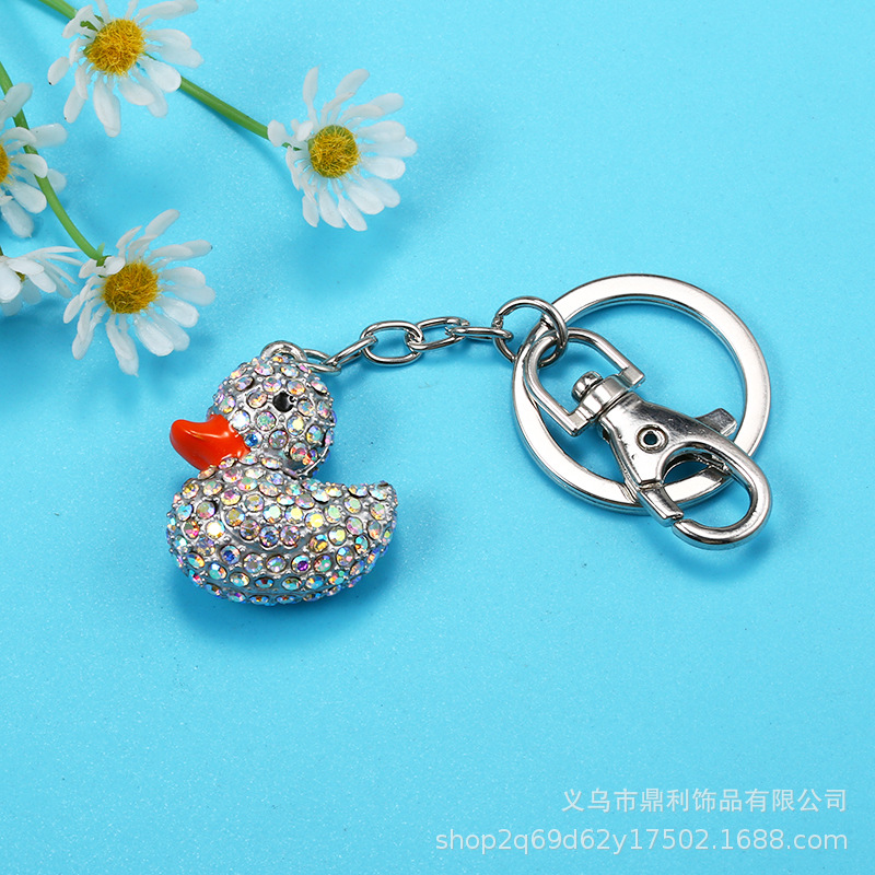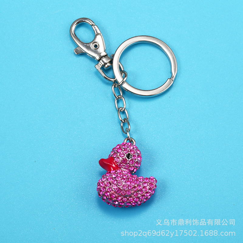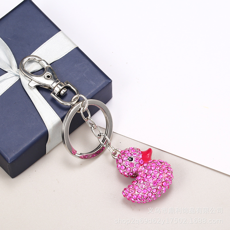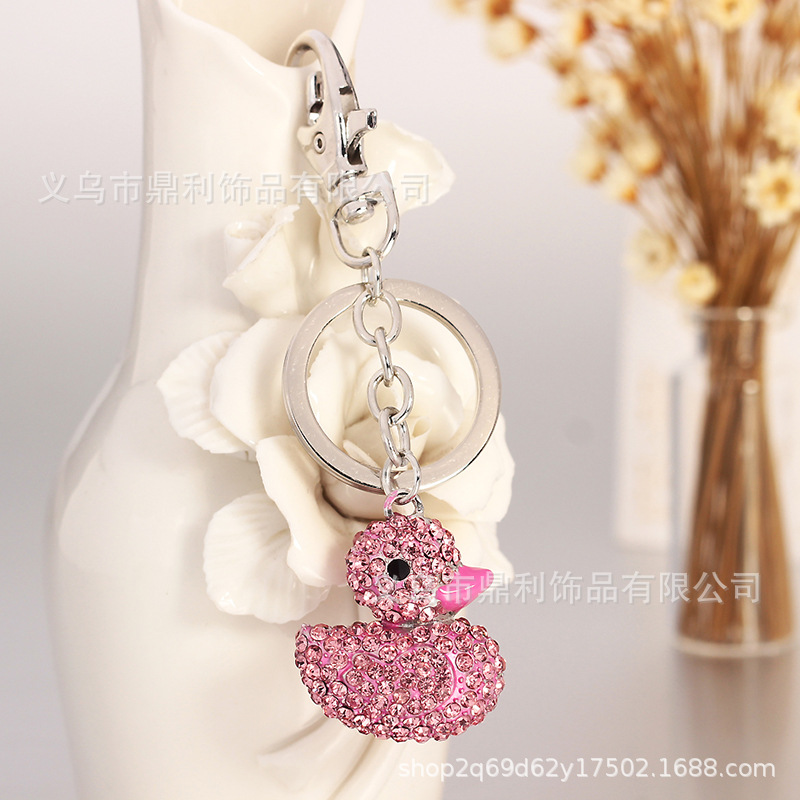 한국식 황금 인기 다이아몬드 박힌 노란 오리 호이스팅 키 체인 토끼 년 여성 가방 펜던트 자동차 액세서리 펜던트스토어 가기