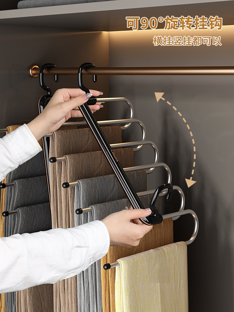접이식 바지 랙 가정용 다기능 다층 바지 걸이 매직 원활한 미끄럼 방지 바지 클립 보관 유물 바지 걸이스토어 가기