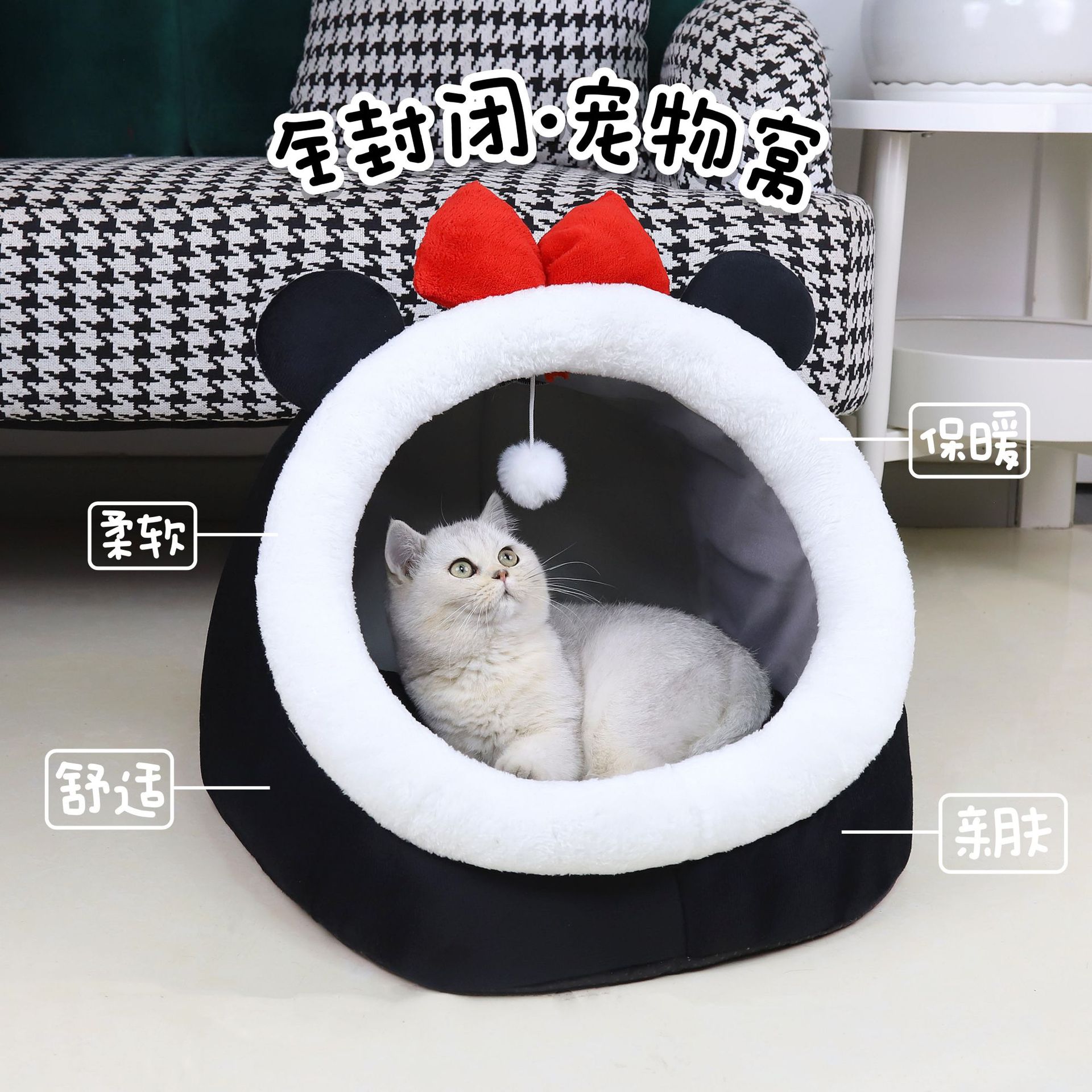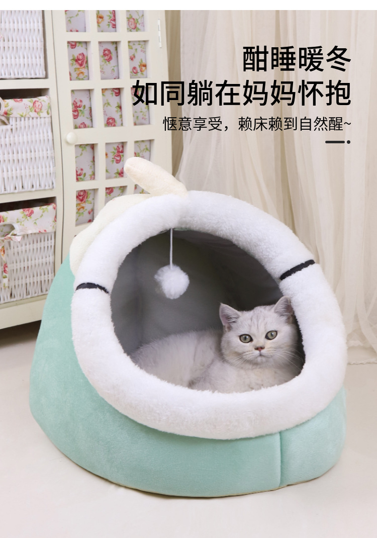 사계절용 애완동물 고양이 개집, 강아지 개집, 토끼 개집, 반밀폐형 겨울 소형견 두껍고 따뜻하며 탈부착 및 세탁이 가능한 고양이 침대스토어 가기