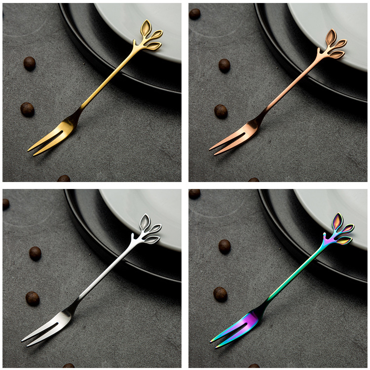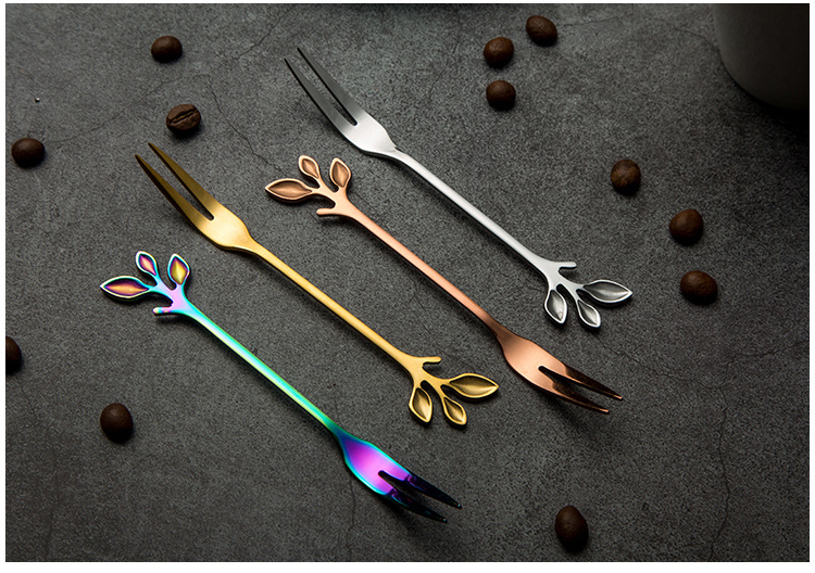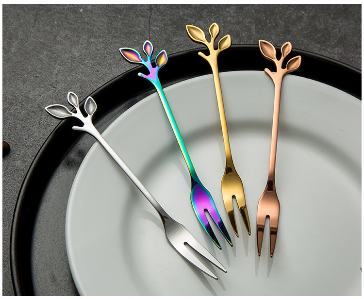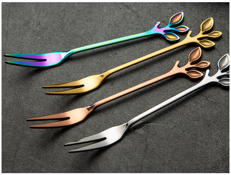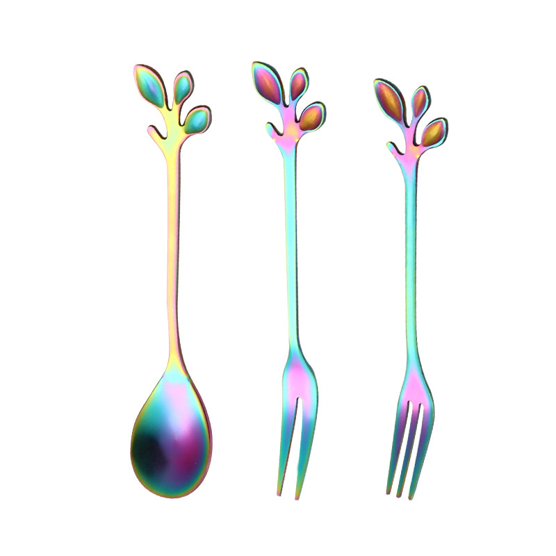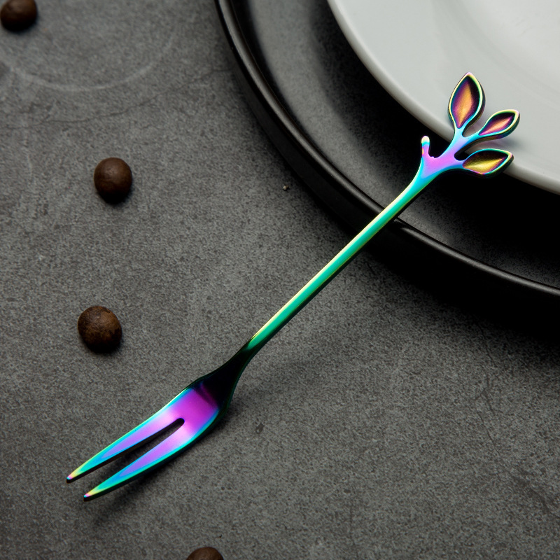 • 12cm 잎 포크 스푼 세트-마술 색상 [두꺼운 품질]]