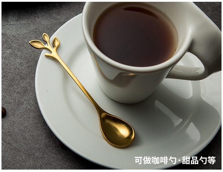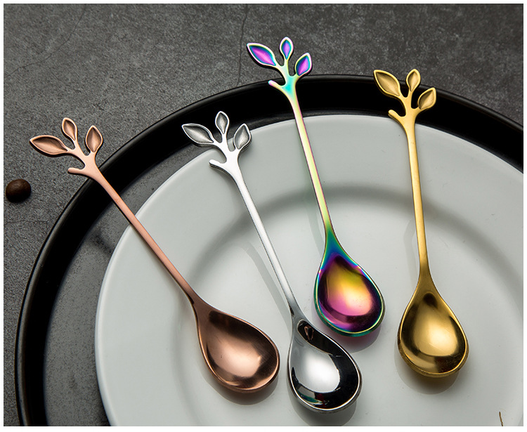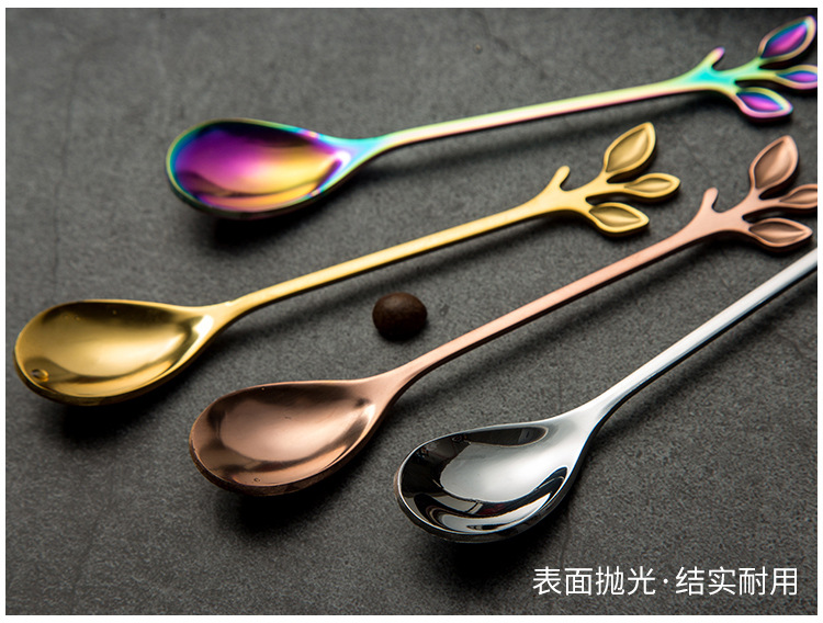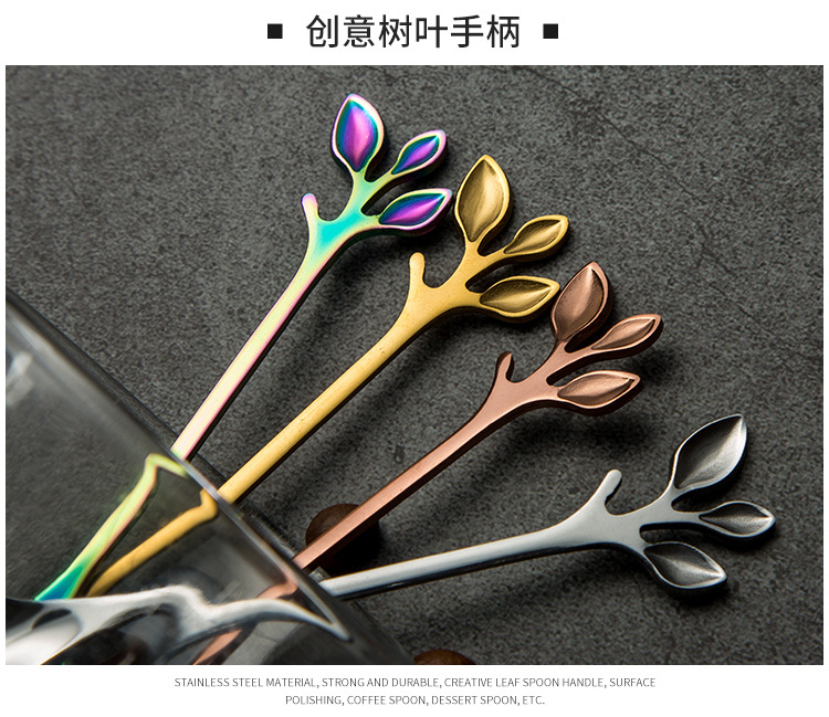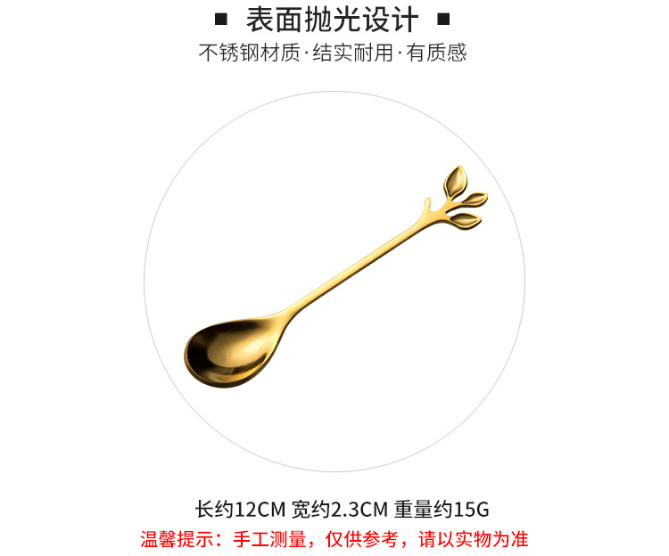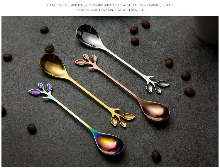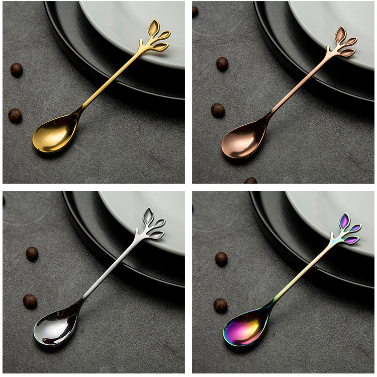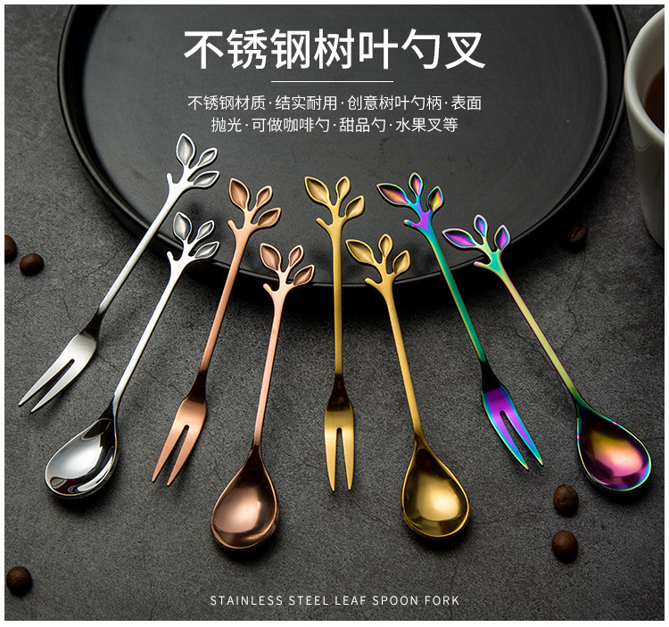 창조적 인 황금 잎 숟가락 작은 커피 숟가락 혼합 숟가락 디저트 숟가락 도매 스테인리스 잎 숟가락 과일 포크스토어 가기