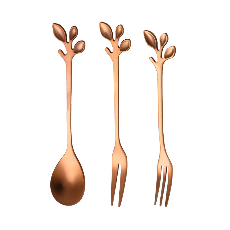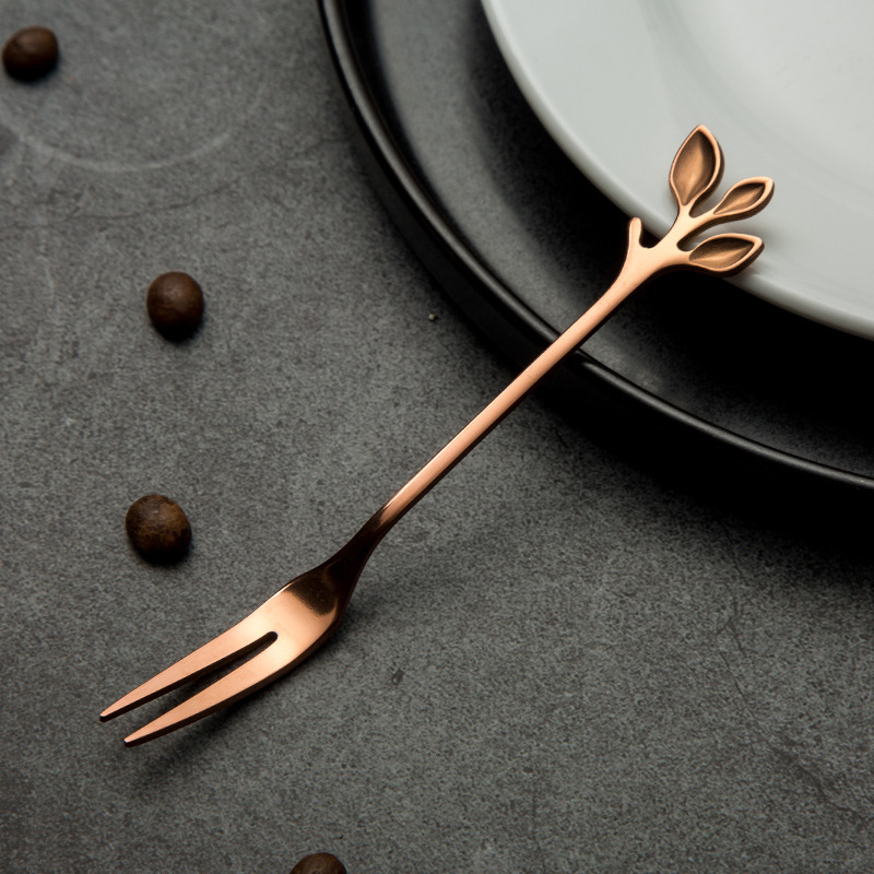• 12cm 잎 포크 스푼 세트-로즈 골드 [두꺼운 품질]]