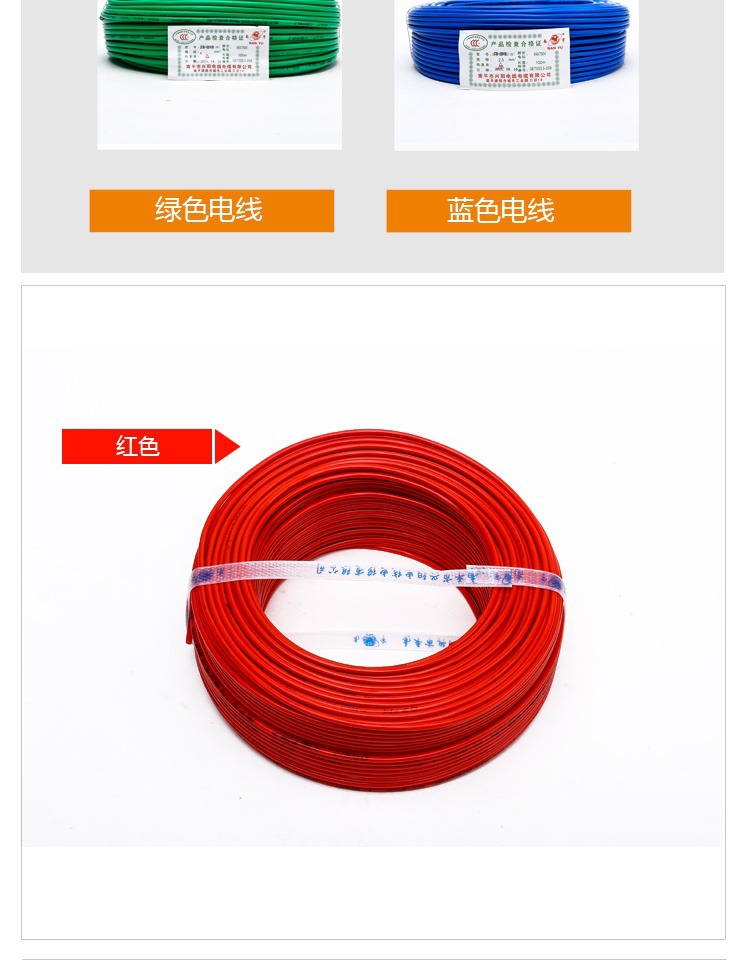 순수 구리 난핑 와이어 및 케이블 BV1.5/2.5/4/6 스퀘어 싱글 코어 하드 와이어 ZR 난연성 국가 표준 가정용 와이어스토어 가기
