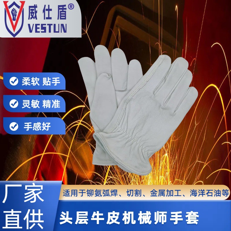 • 采用优质牛头层皮,柔软舒适、耐磨。适用于铆工、氩弧焊、切割、金属加工、海洋石油、防机械伤害等。