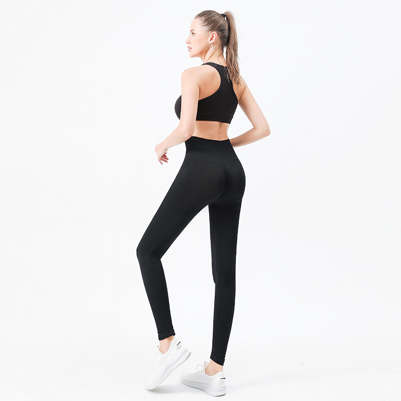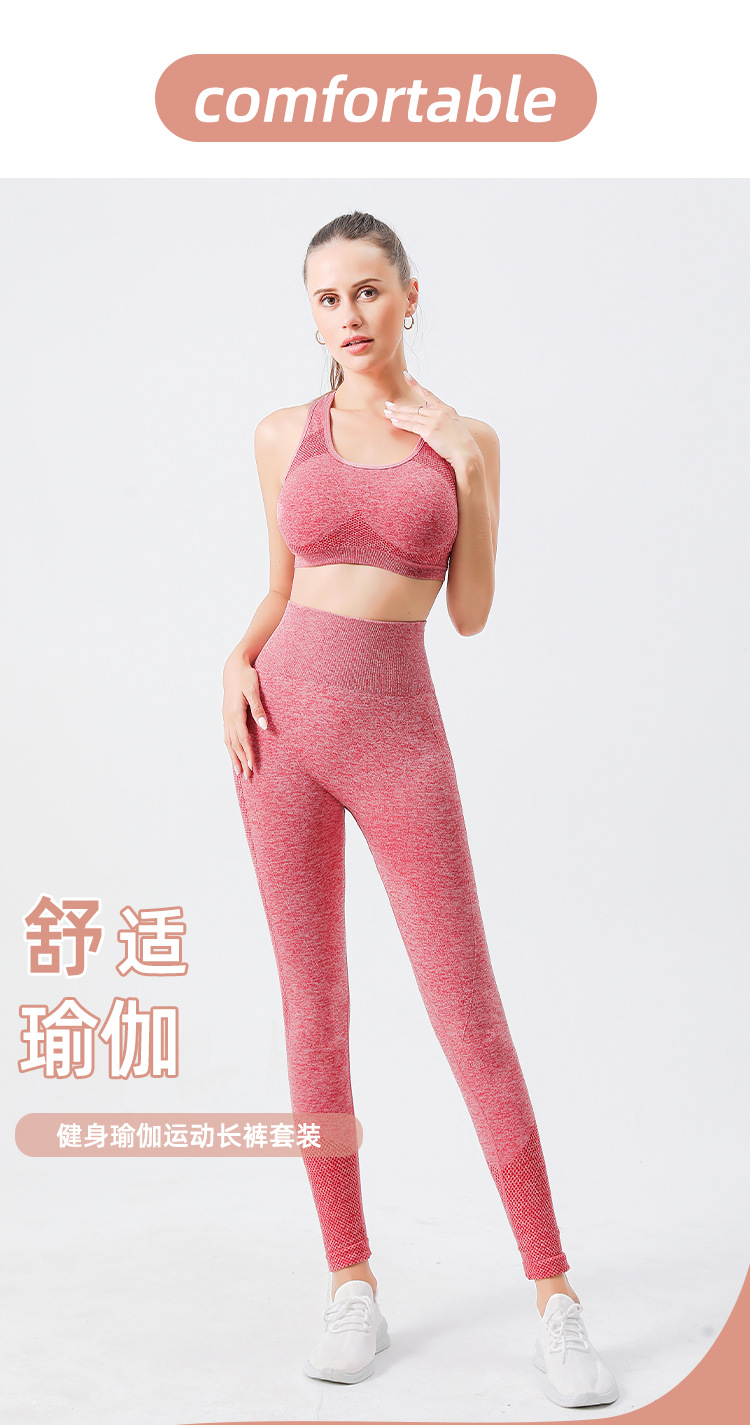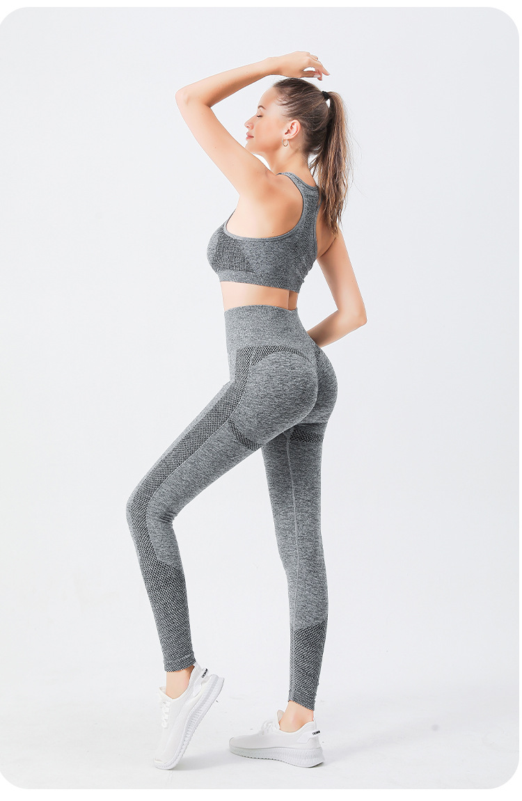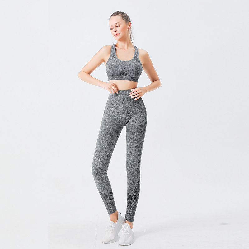 크로스 보더 심리스 요가 의류 하이 웨이스트 포인트 힙 요가 팬츠 가슴 패드 스포츠 피트니스 브라 속옷 2 종 세트스토어 가기