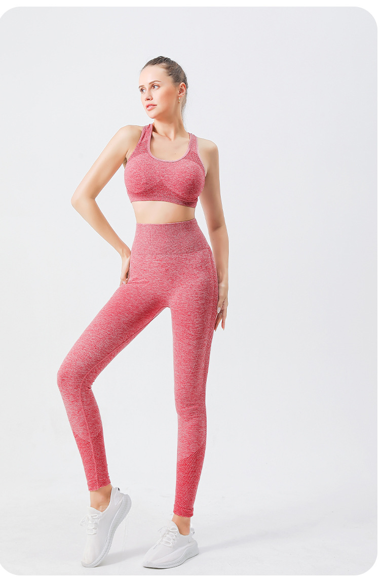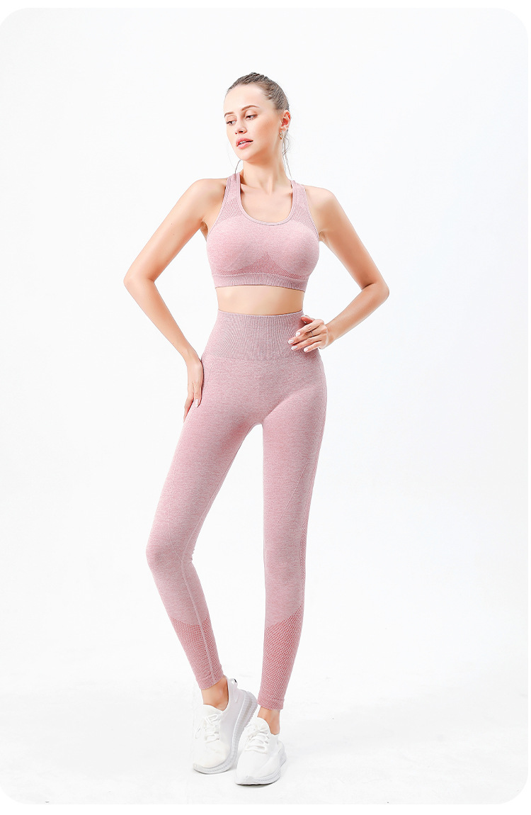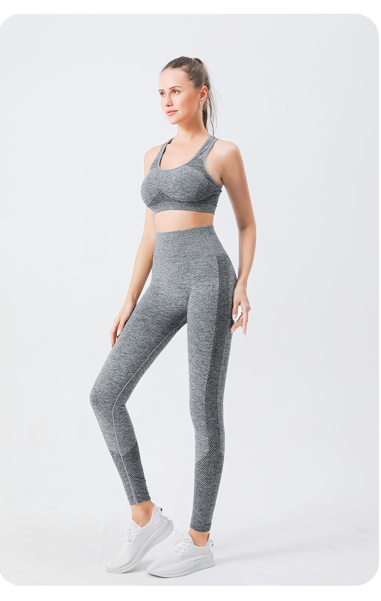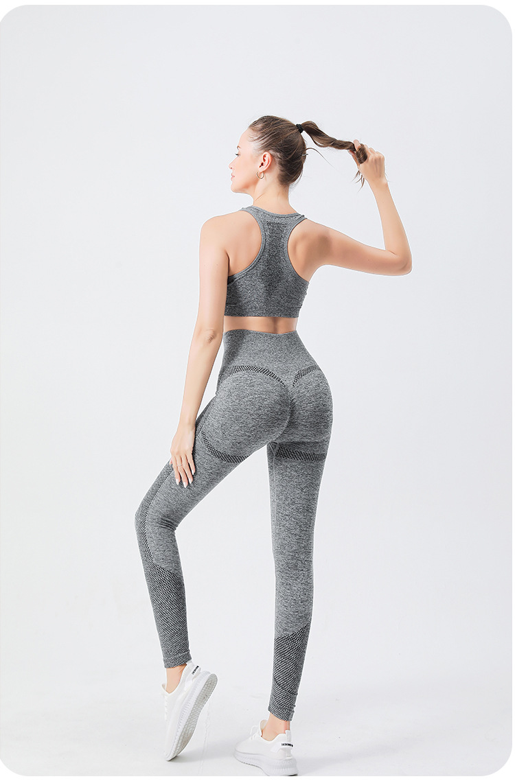 크로스 보더 심리스 요가 의류 하이 웨이스트 포인트 힙 요가 팬츠 가슴 패드 스포츠 피트니스 브라 속옷 2 종 세트스토어 가기