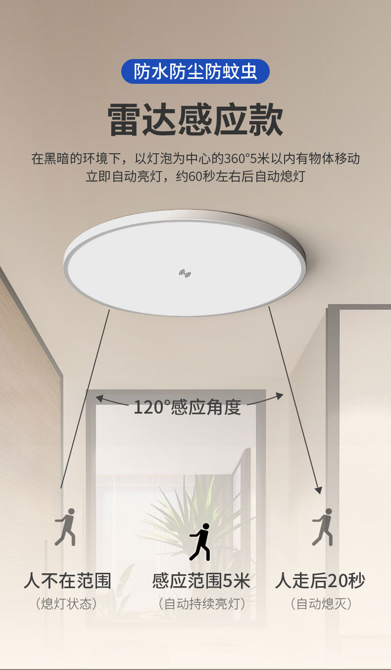 • 초박형 레이더 유도 모델★36W 백색광-사람들이오고 밝아지고, 사람들이 가고 얽히다