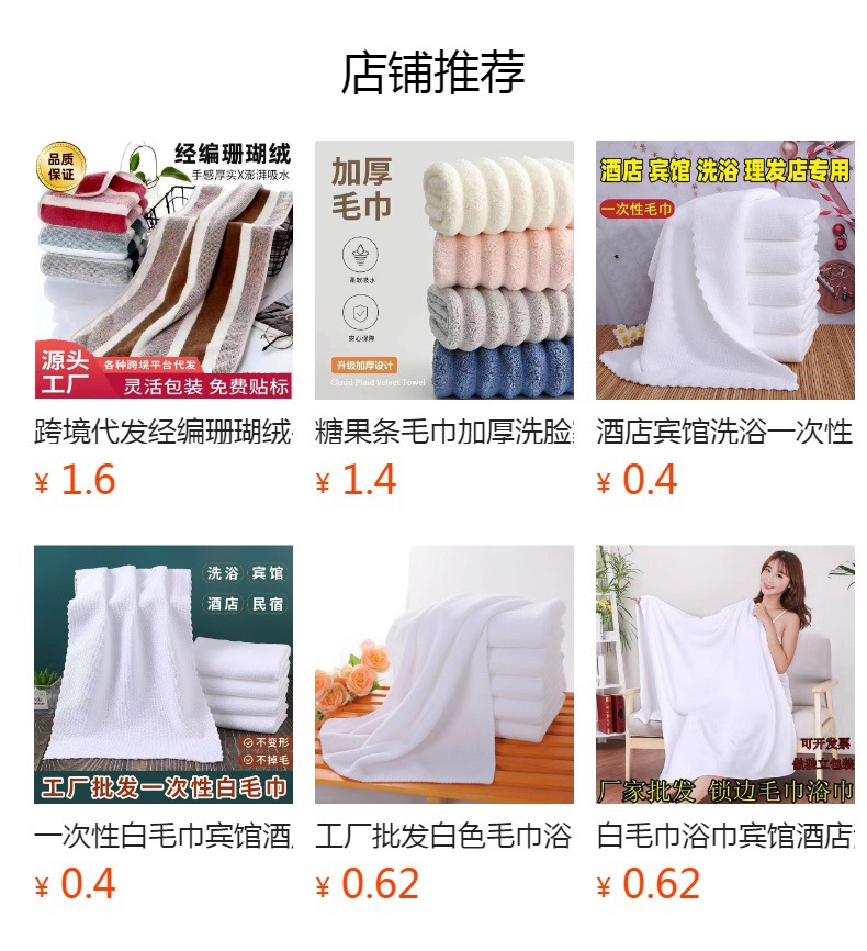 일회용 흰색 수건 호텔, 민박, 목욕탕, 족욕장용 극세사 속건 내구성 상업용 수건 도매스토어 가기