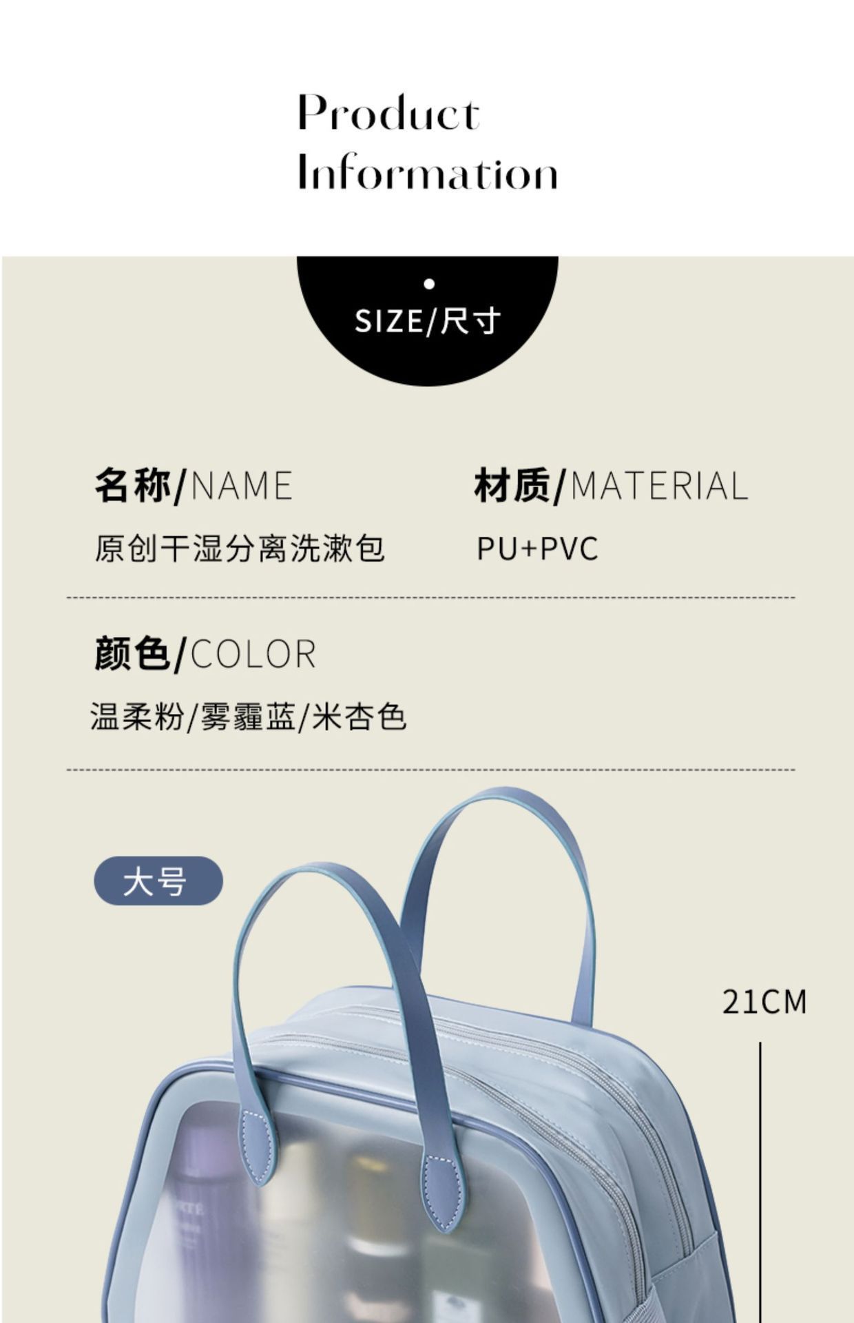 새로운 건식 및 습식 분리 세면도구 가방 대용량 화장품 가방 간단한 휴대용 하이 컬러 방수 수영 보관 가방
