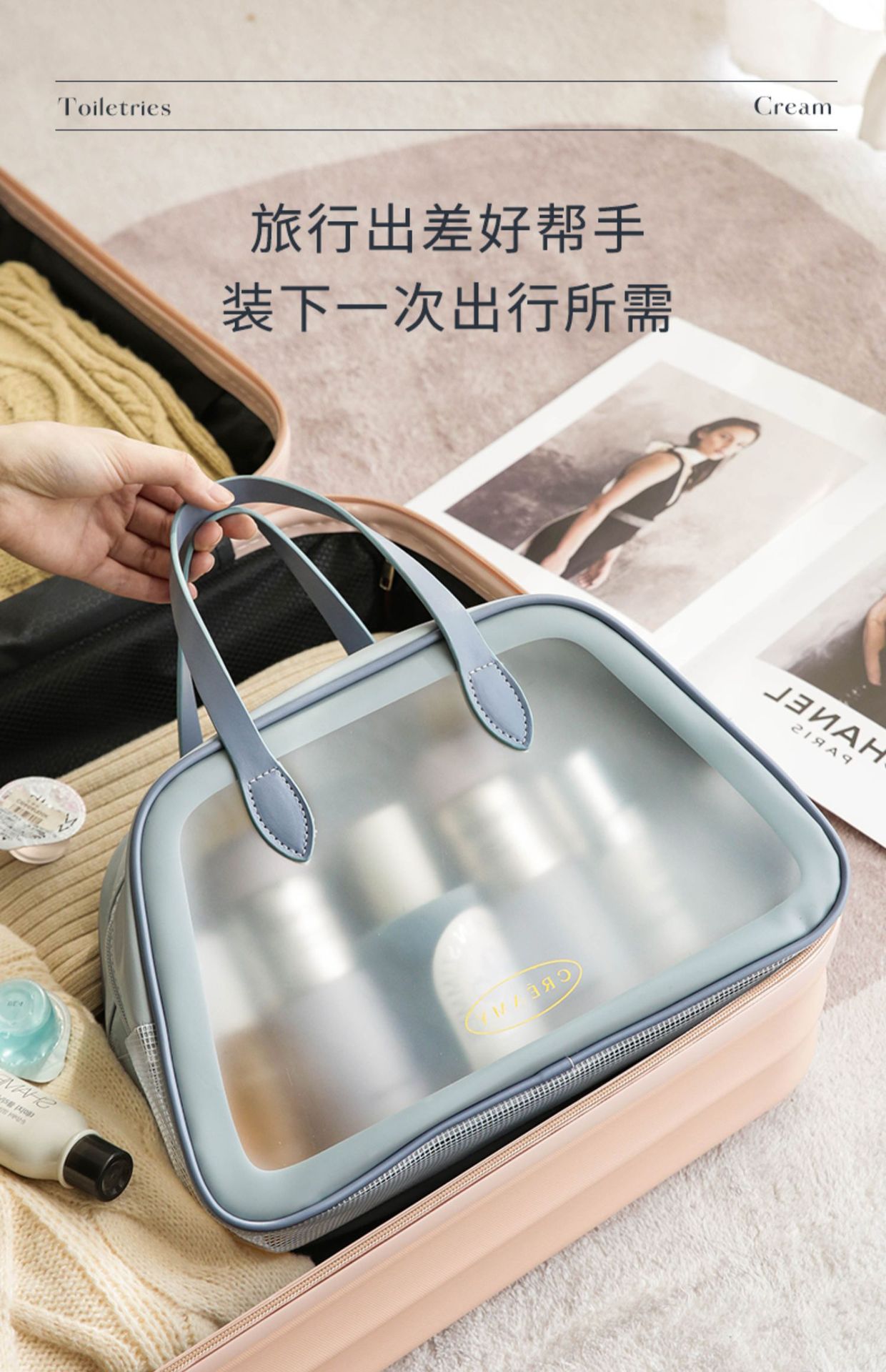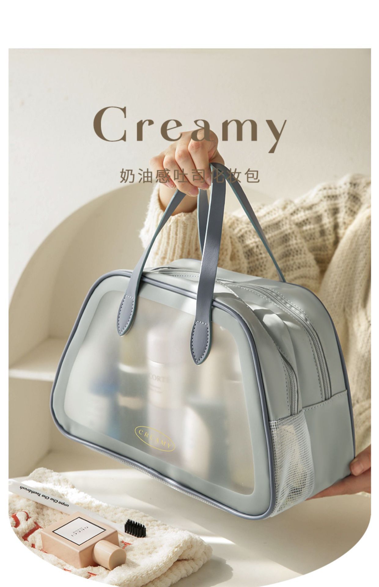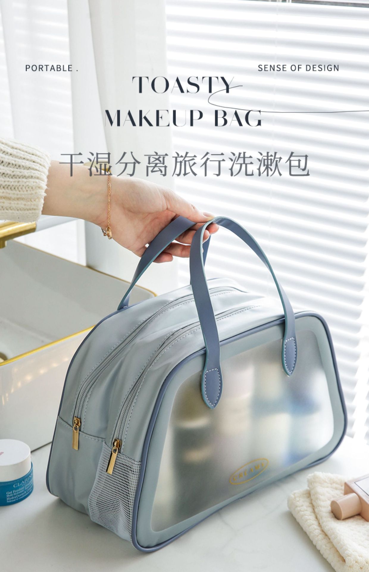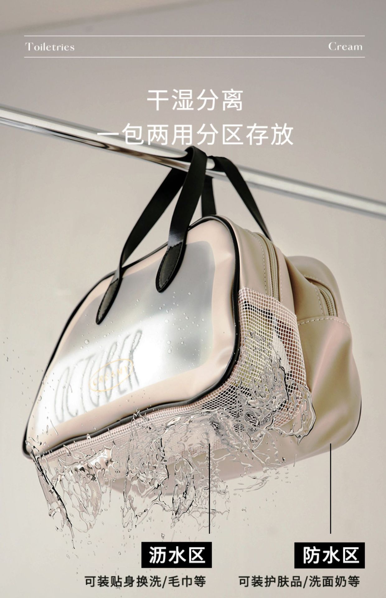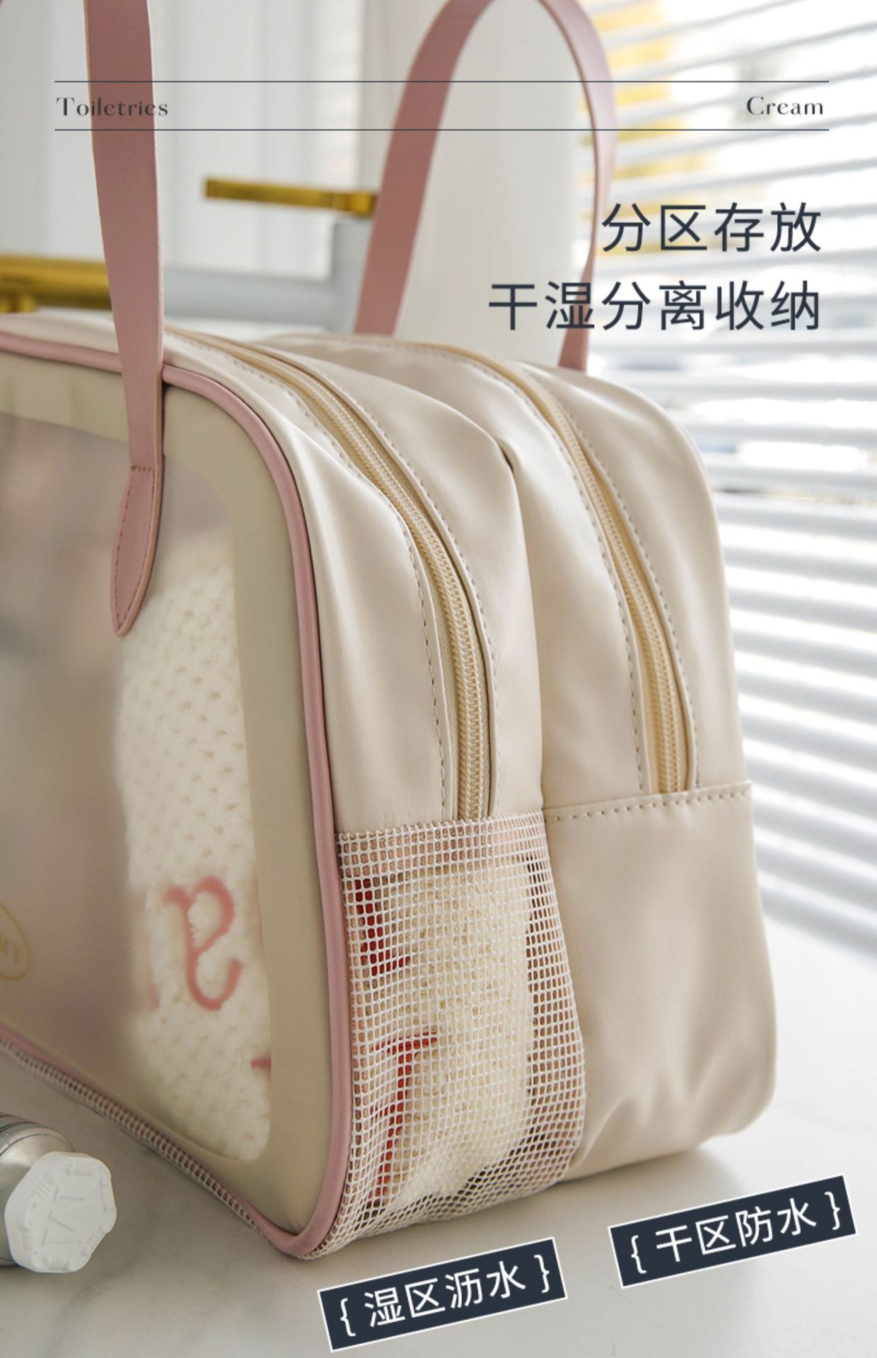 새로운 건식 및 습식 분리 세면도구 가방 대용량 화장품 가방 간단한 휴대용 하이 컬러 방수 수영 보관 가방스토어 가기