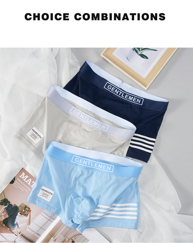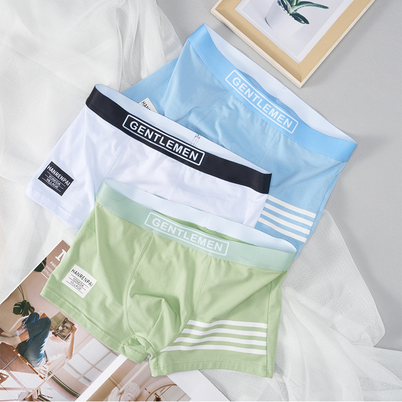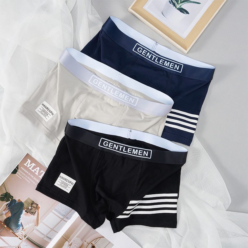 트렌디 한 새로운 남성 속옷 도매 속옷 남성 통기성 면 4 코너 복서 바지 미드 허리 단색 일본 남성 속옷스토어 가기