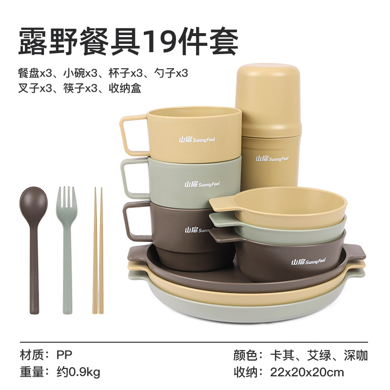 SunnyFeel 마운틴 게이트 야외 식기 세트 휴대용 캠핑 피크닉 어린이 성인 그릇 젓가락 여행 세트스토어 가기