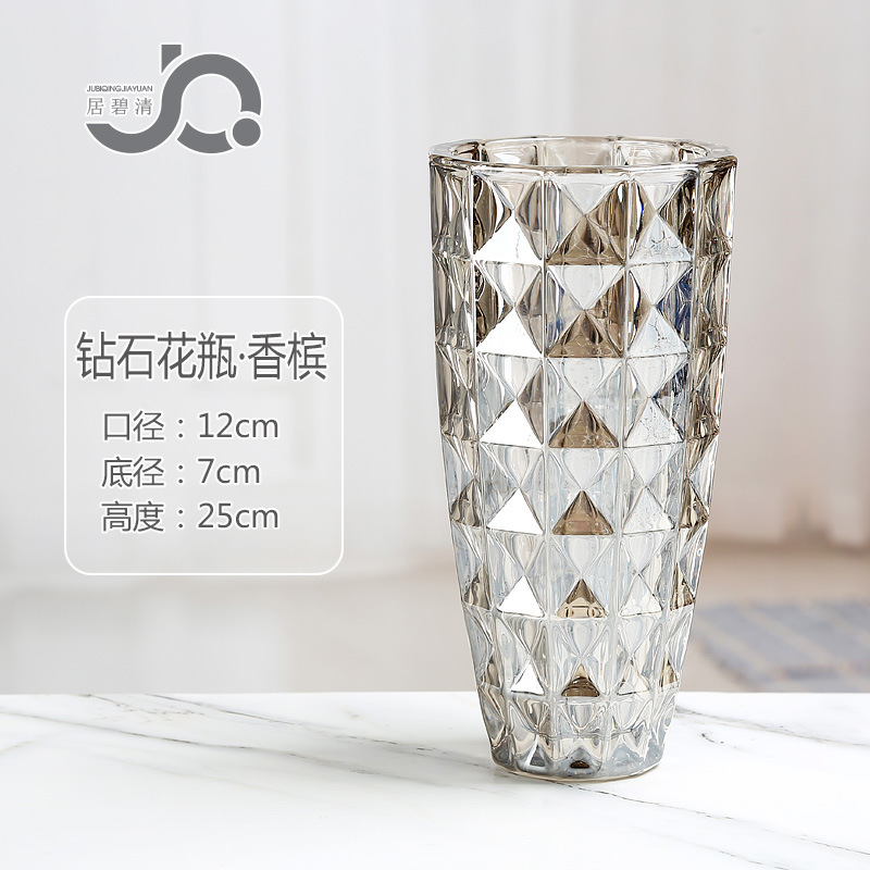 유럽 스타일 데스크탑 유리 꽃병 장식품 투명 유리 거실 사이버 연예인 꽃꽂이 장식 풍부한 대나무 장미 백합스토어 가기