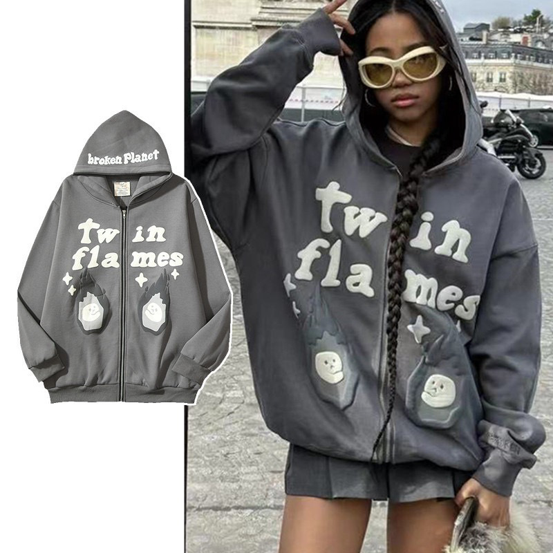 2023 새로운 거품 하나 꽃 느슨한 캐주얼 인쇄 후드 지퍼 남성 스웨터 카디건 스웨트 셔츠 재킷.스토어 가기