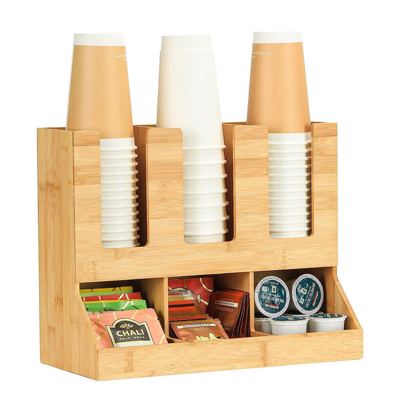대나무 커피 캡슐 티백 저장 조직 상자 일회용 컵 디스펜서