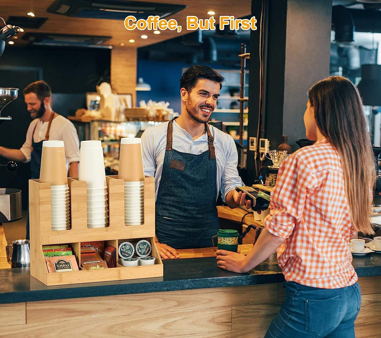 대나무 커피 캡슐 티백 저장 조직 상자 일회용 컵 디스펜서스토어 가기