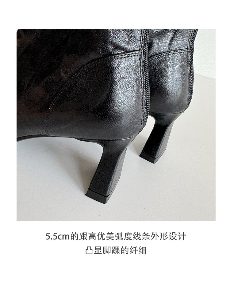 새해맞이~2025 가을/겨울 숏부츠, 손으로 만든 무늬 양가죽, 스퀘어토, 하이힐, 뒷지퍼, 마틴부츠, 안감 플러스, 패셔너블하고 다재다능함
