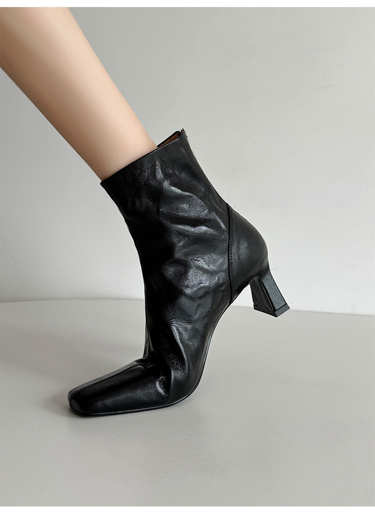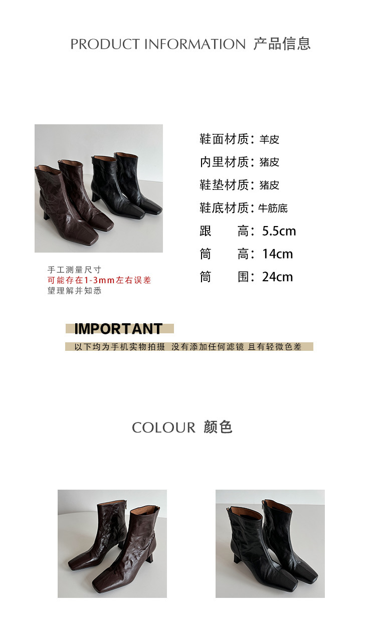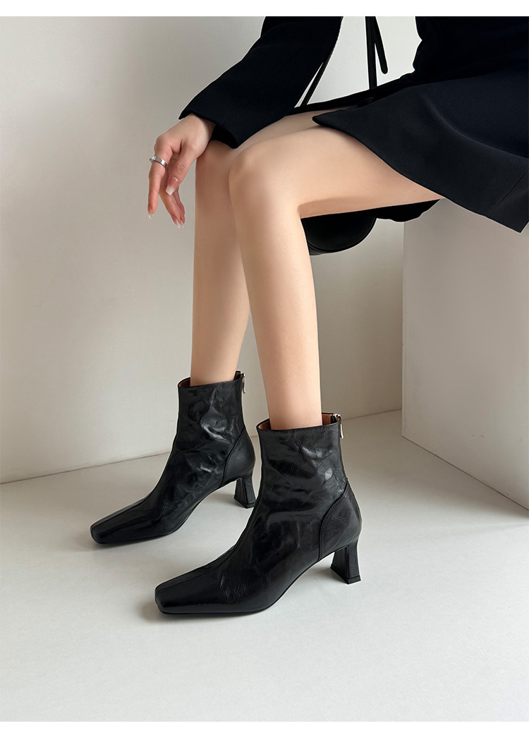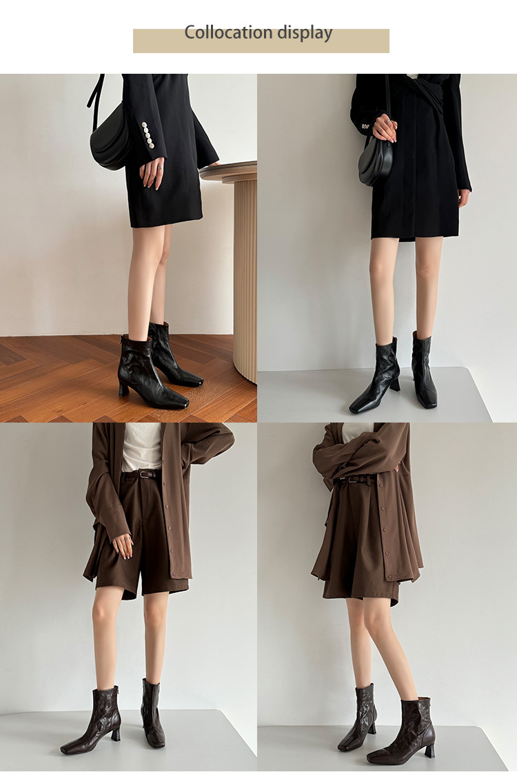 새해맞이~2025 가을/겨울 숏부츠, 손으로 만든 무늬 양가죽, 스퀘어토, 하이힐, 뒷지퍼, 마틴부츠, 안감 플러스, 패셔너블하고 다재다능함스토어 가기