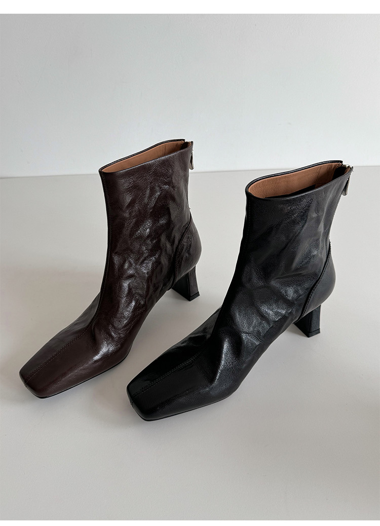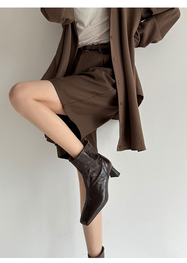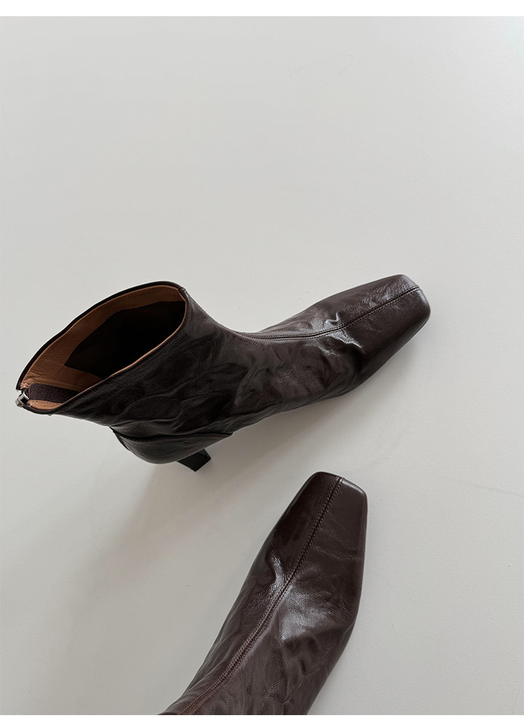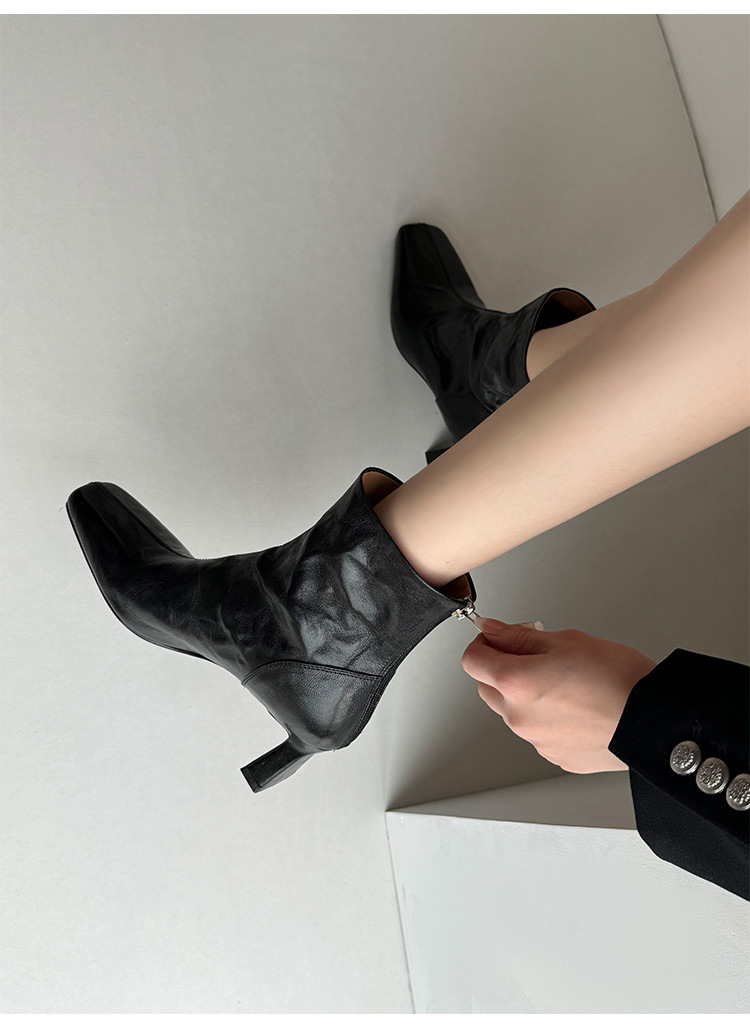 새해맞이~2025 가을/겨울 숏부츠, 손으로 만든 무늬 양가죽, 스퀘어토, 하이힐, 뒷지퍼, 마틴부츠, 안감 플러스, 패셔너블하고 다재다능함스토어 가기