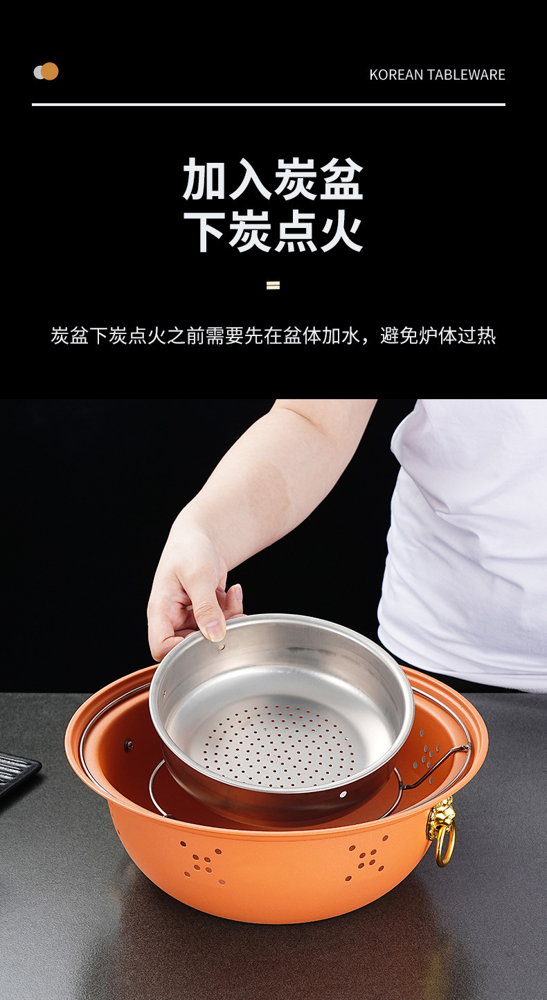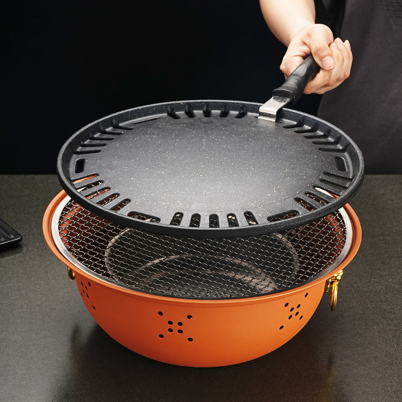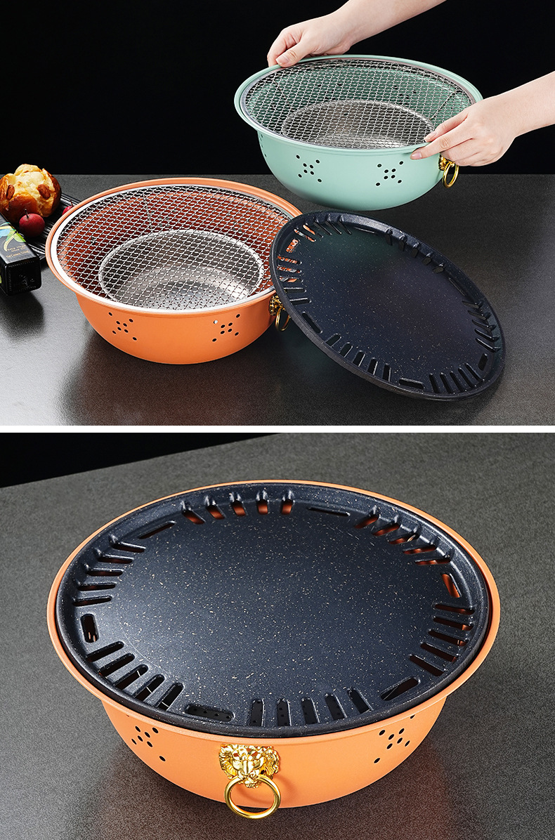 바베큐 오븐 한국식 바베큐 오븐 야외 캠핑 초경량 편리한 탄소 오븐 원형 차 요리용 다기능 냄비