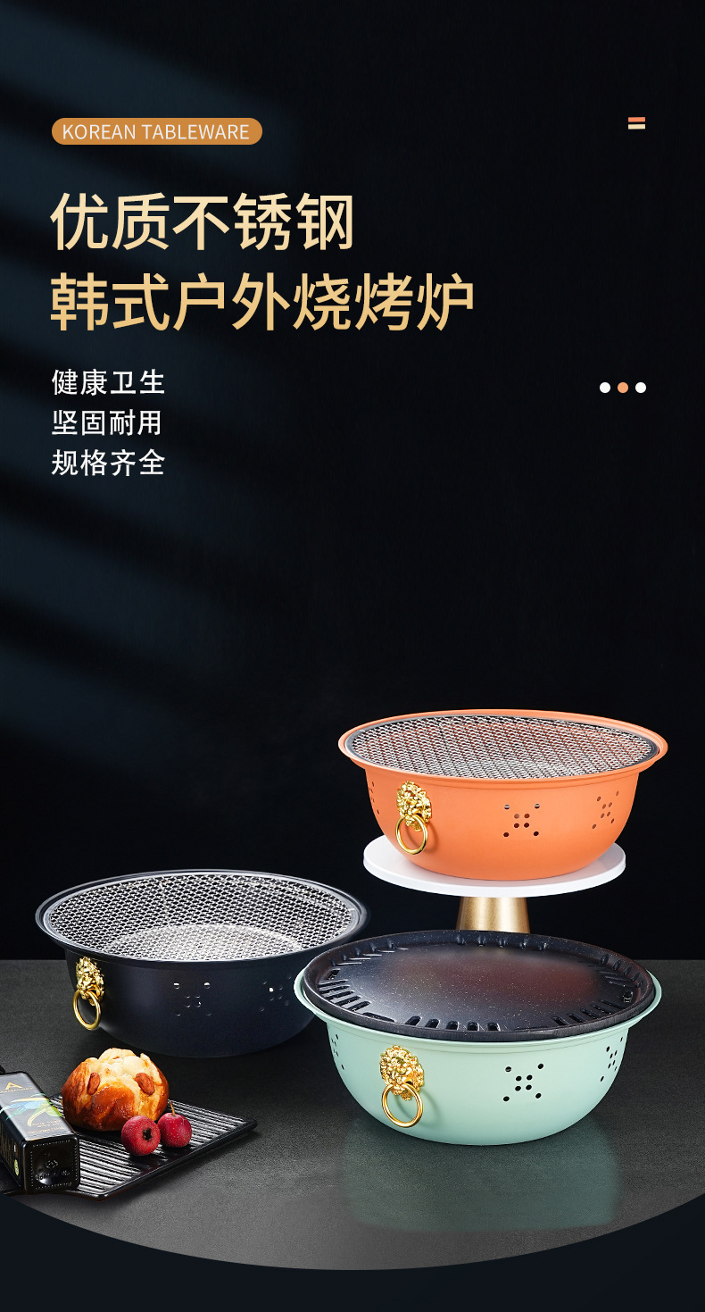 바베큐 오븐 한국식 바베큐 오븐 야외 캠핑 초경량 편리한 탄소 오븐 원형 차 요리용 다기능 냄비스토어 가기