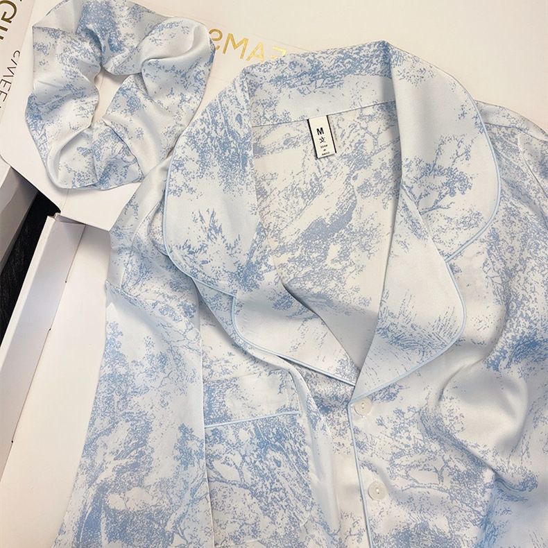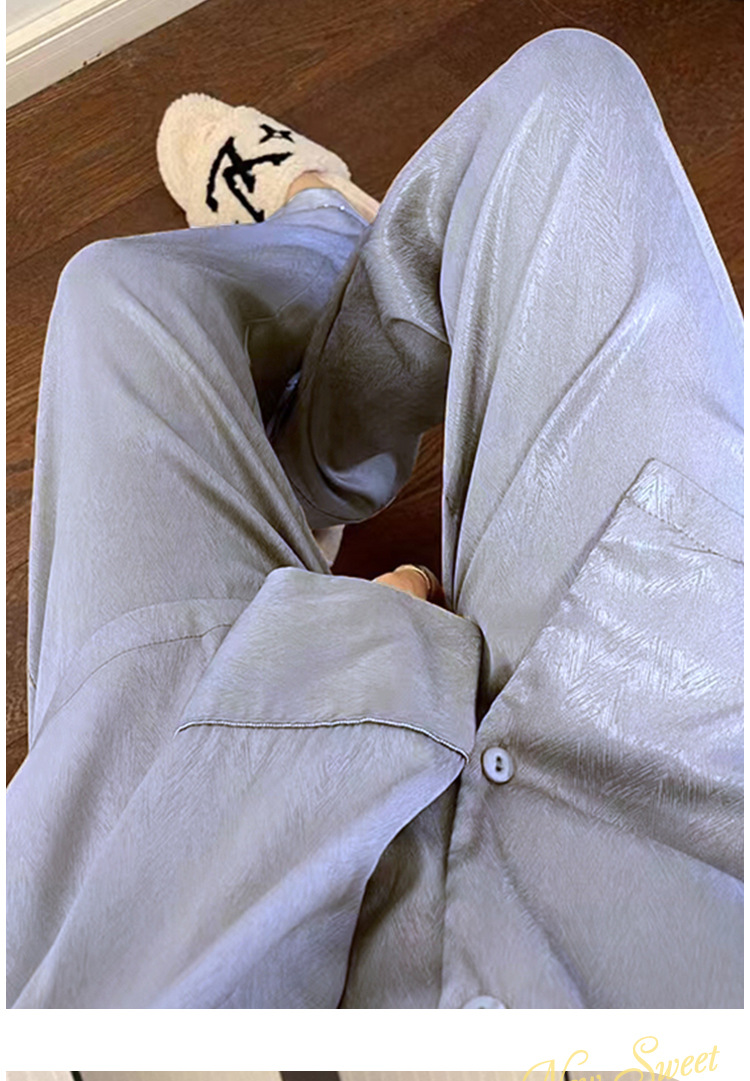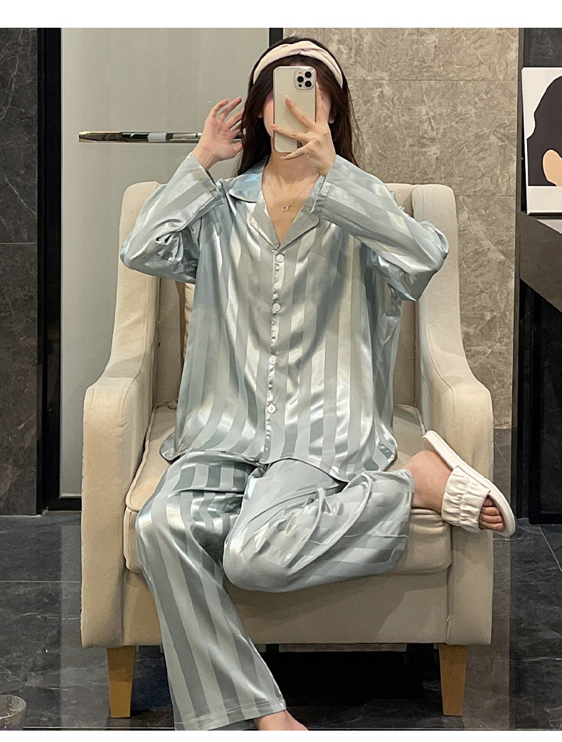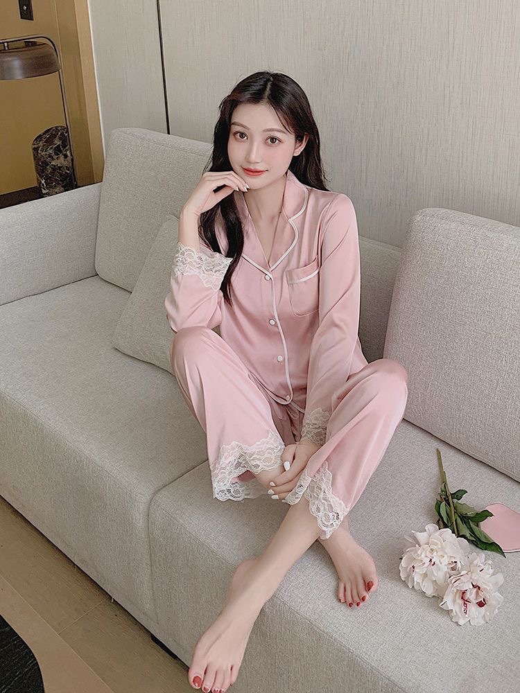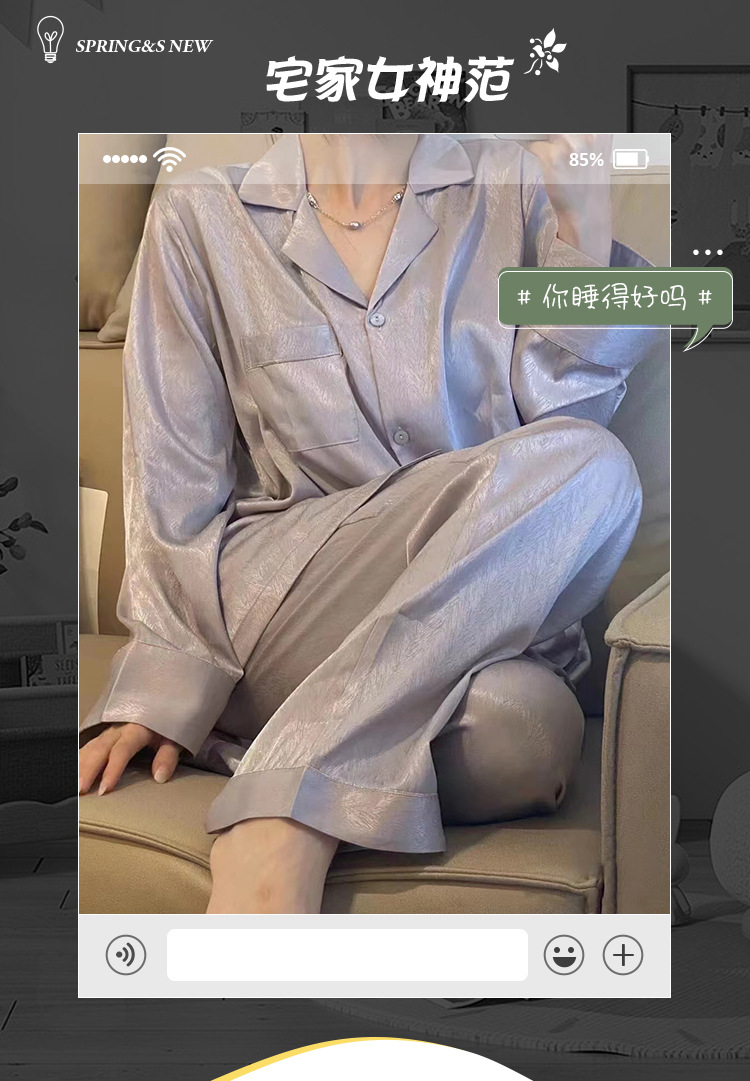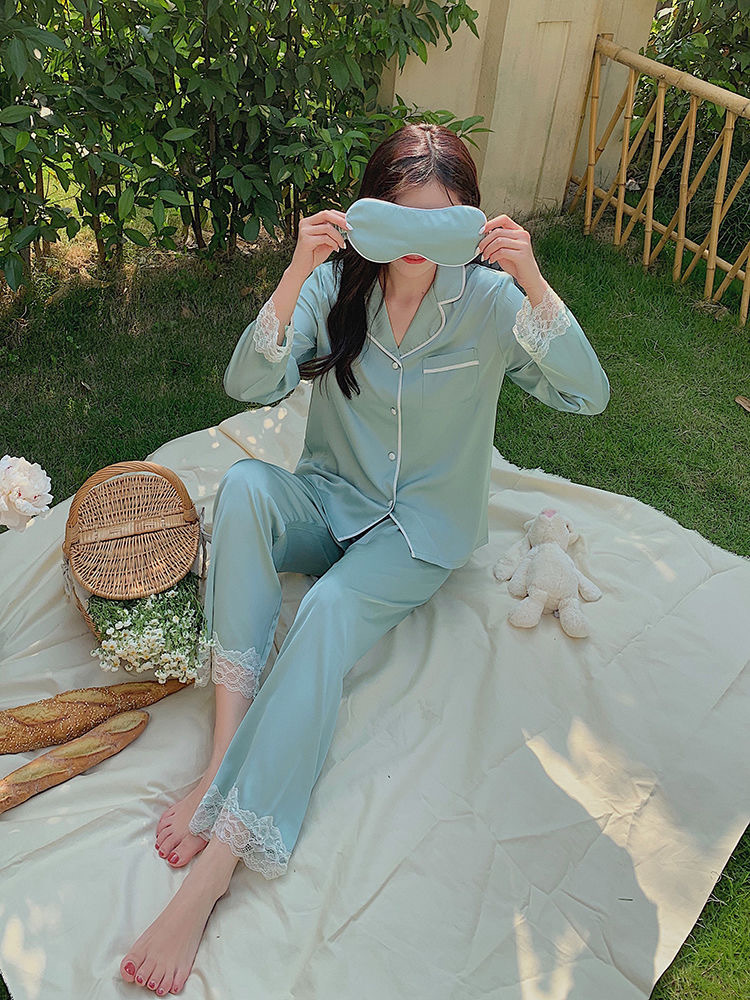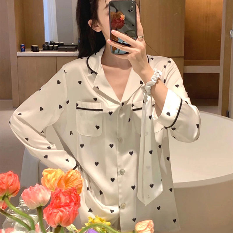 크로스 보더 TikTok 라이브 잠옷 여성용 봄과 가을 아이스 실크 긴팔 바지 잠옷을 입은 기숙사의 얇은 학생스토어 가기