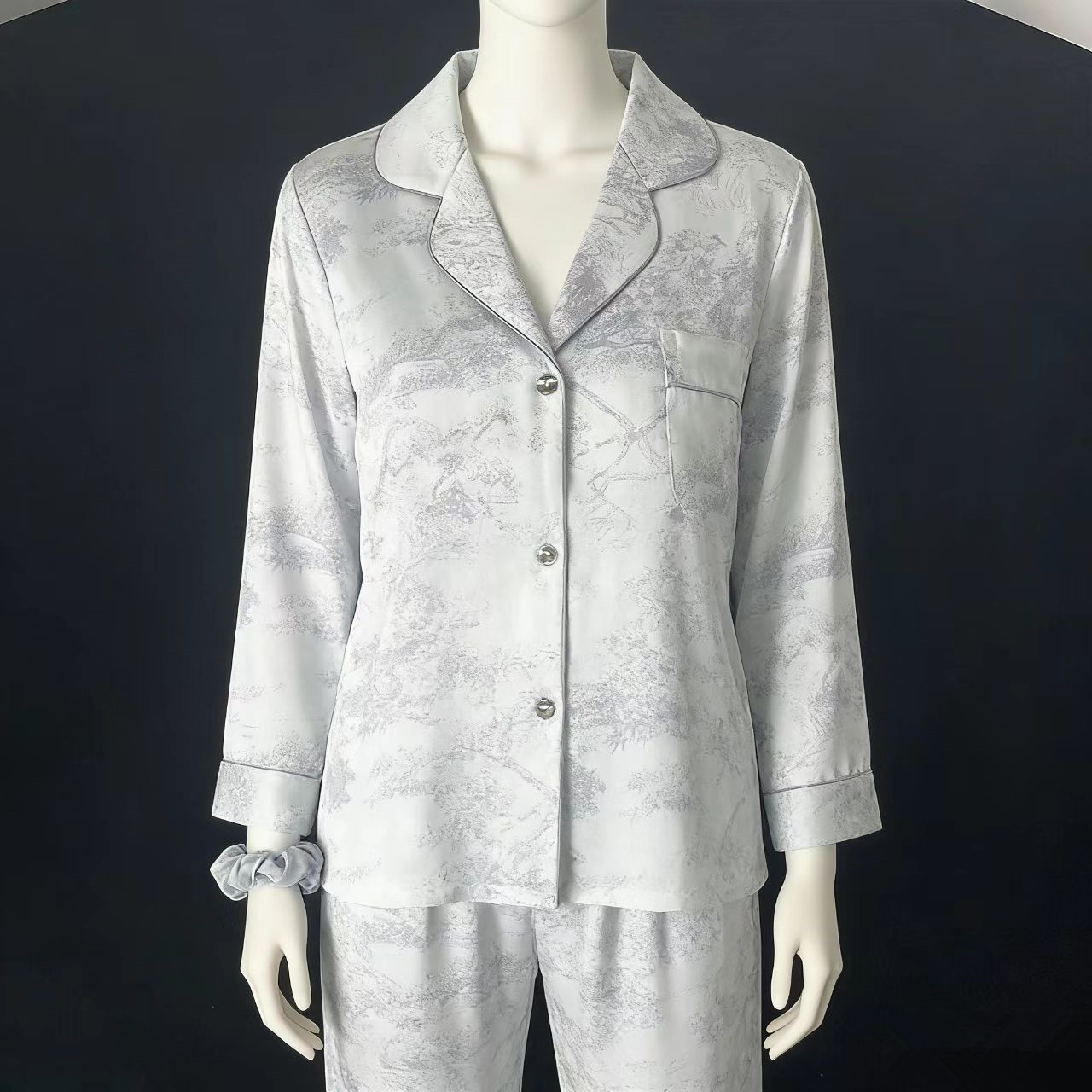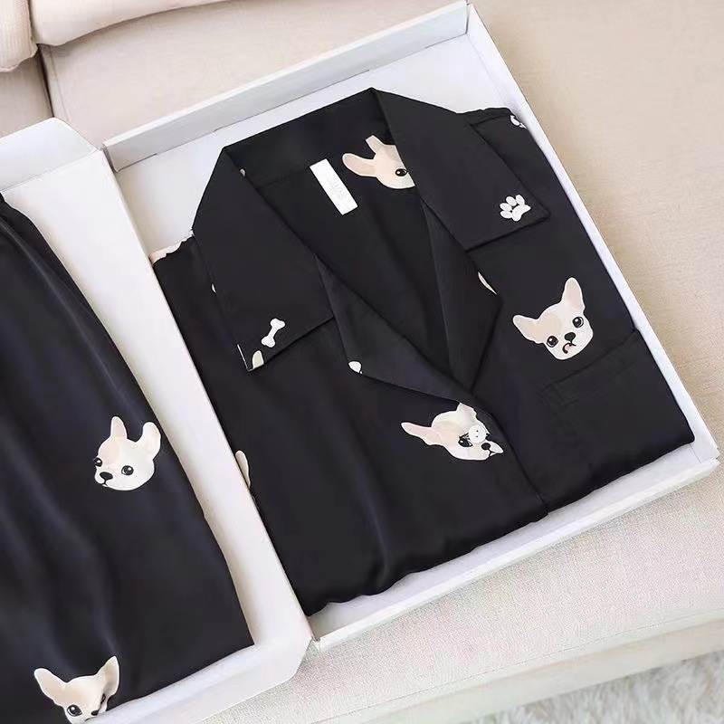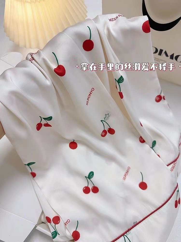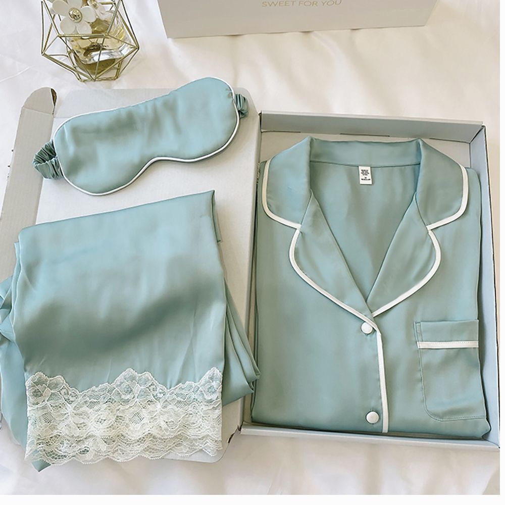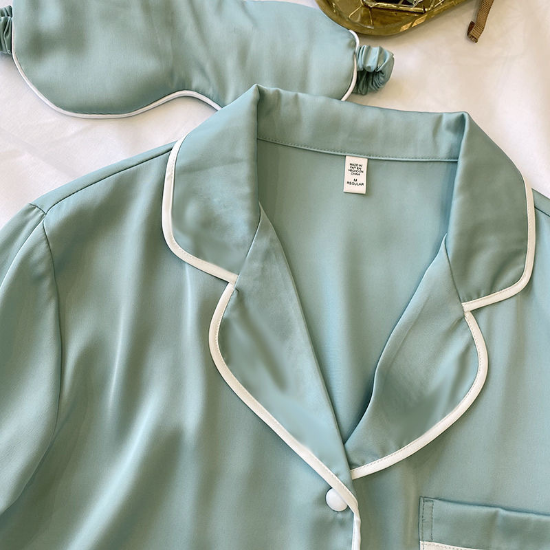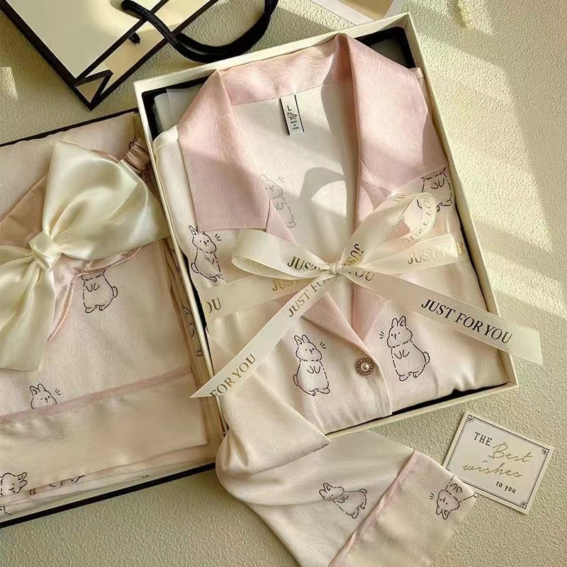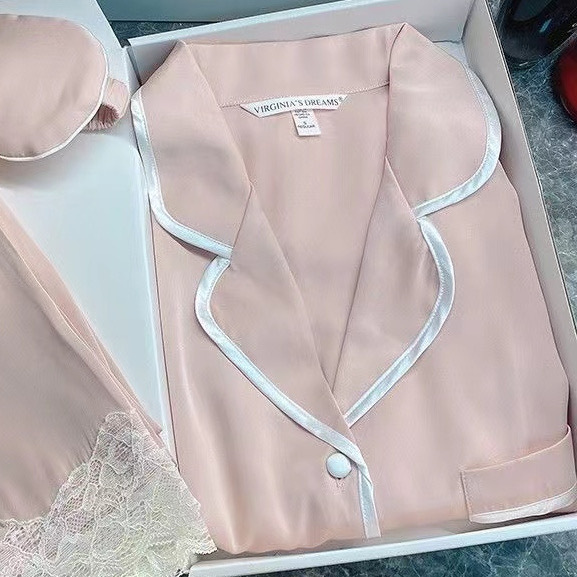 크로스 보더 TikTok 라이브 잠옷 여성용 봄과 가을 아이스 실크 긴팔 바지 잠옷을 입은 기숙사의 얇은 학생스토어 가기
