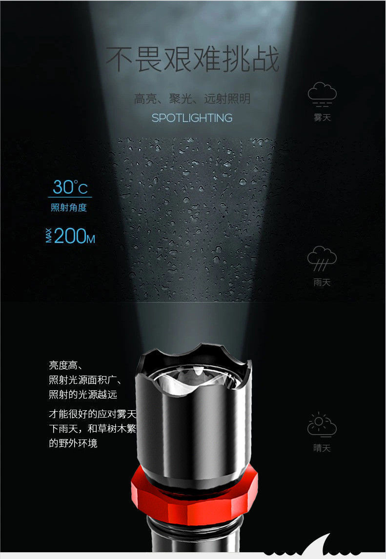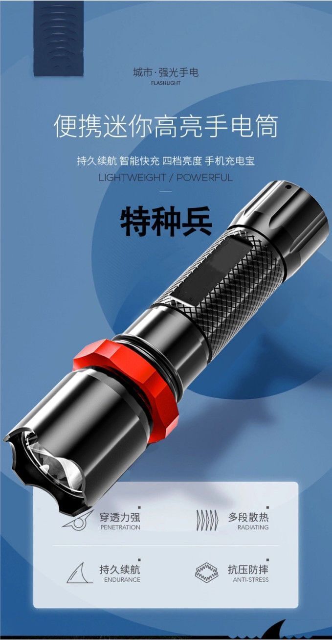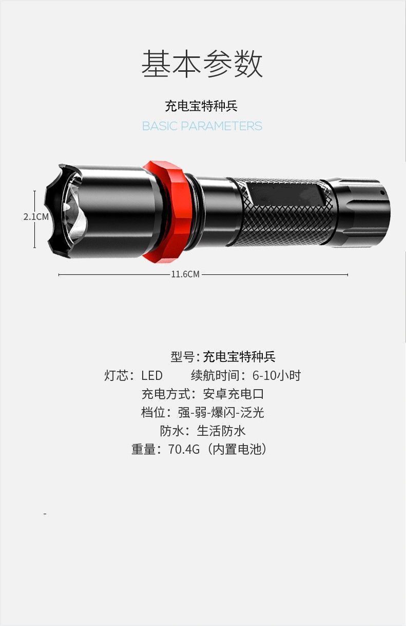 충전 보물 강한 빛 손전등 USB 충전 미니 학생 조명 편리한 슈퍼 브라이트 홈 장거리 옥외 손전등