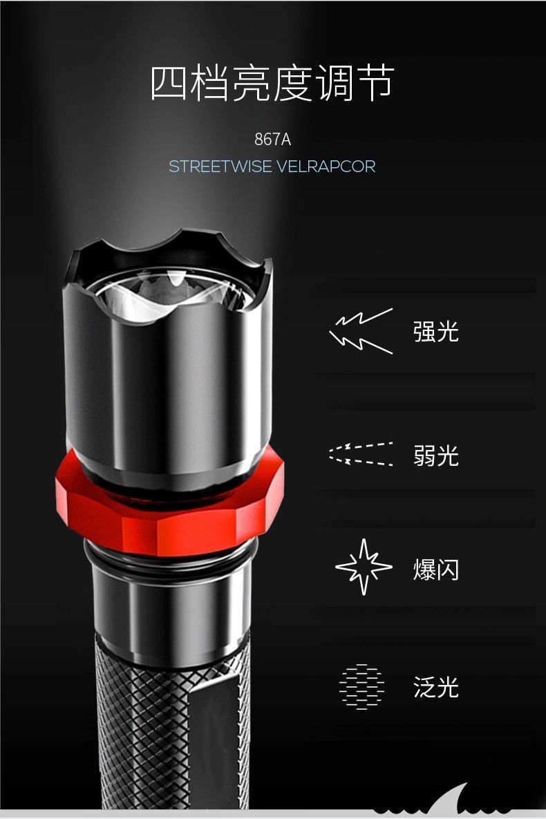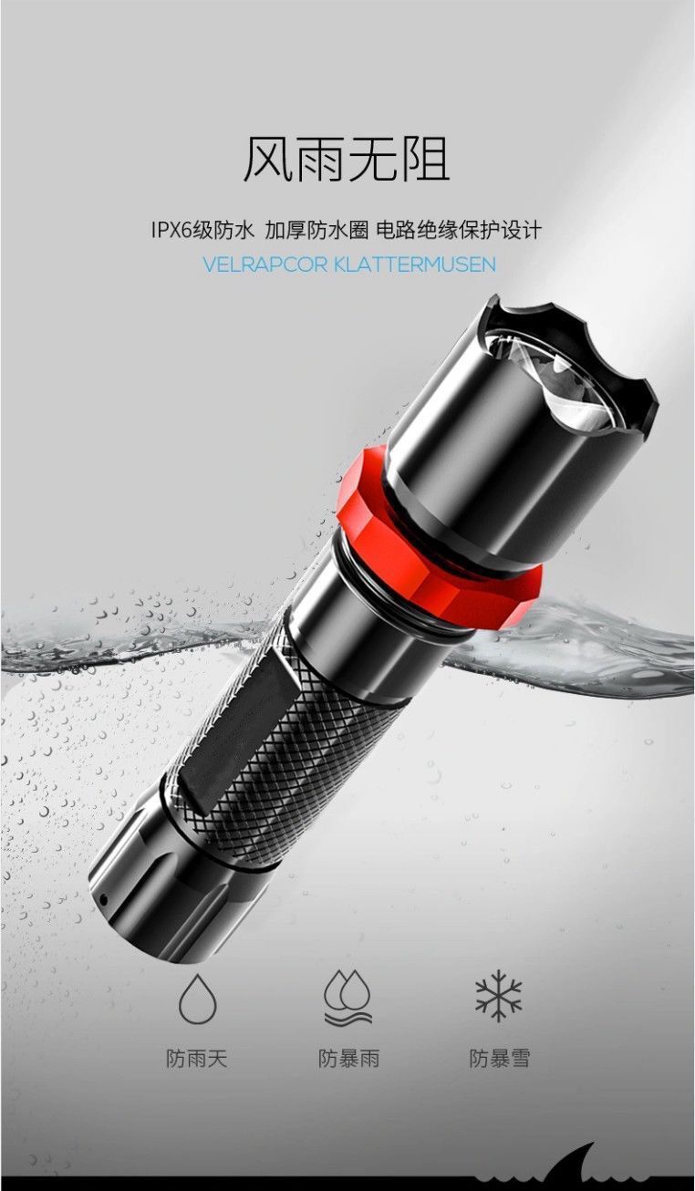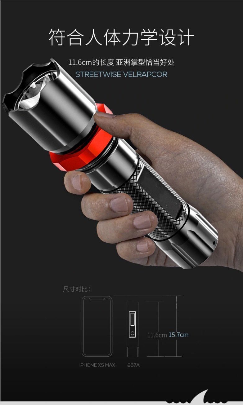 • 알루미늄 합금 빨간색 원형 [줌 소형 손전등] + 충전 케이블