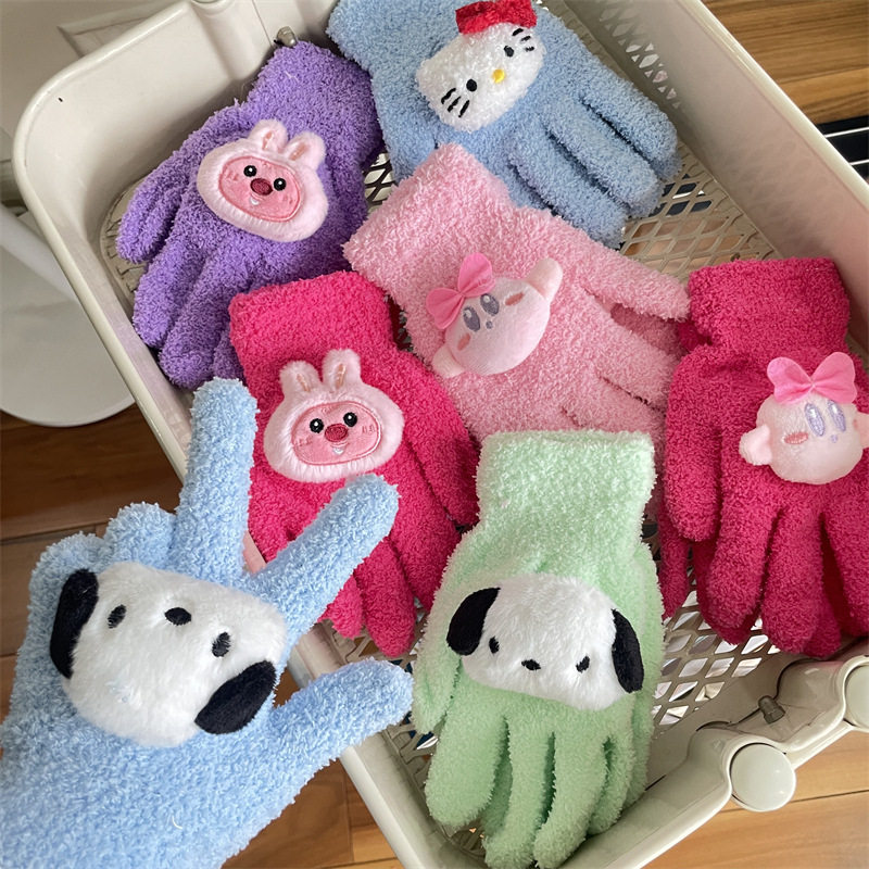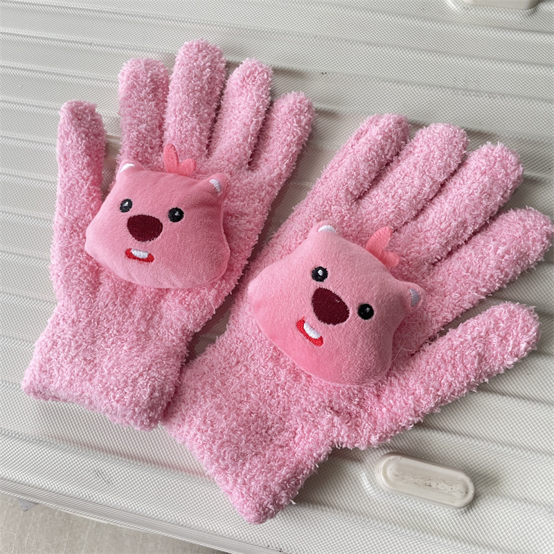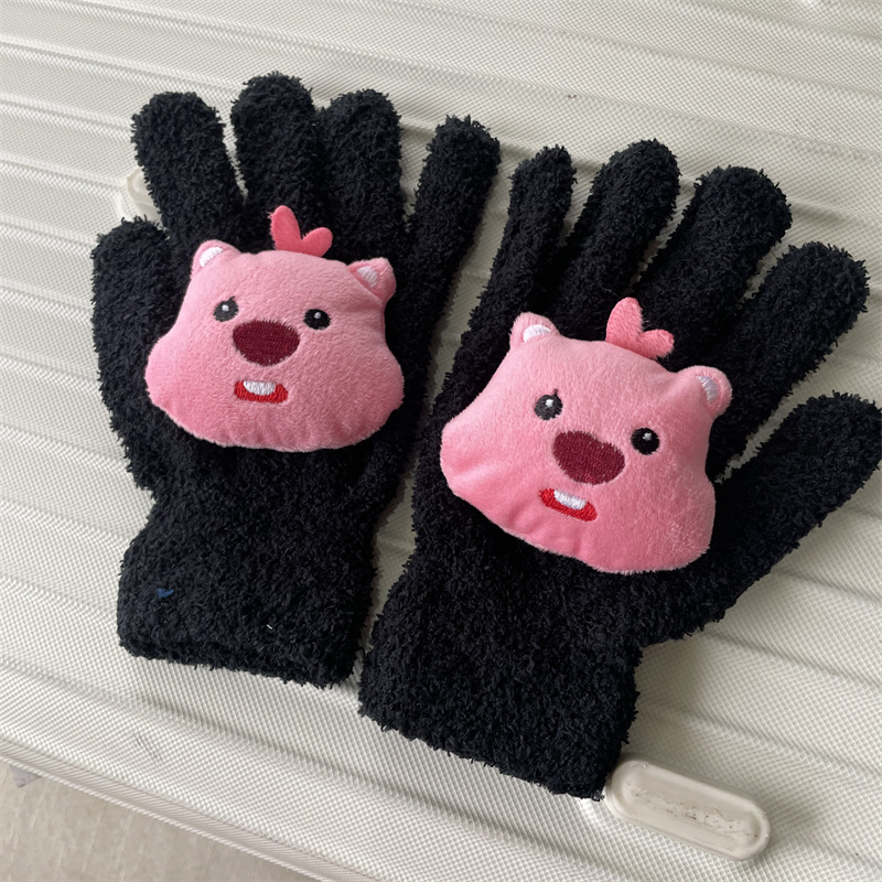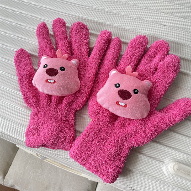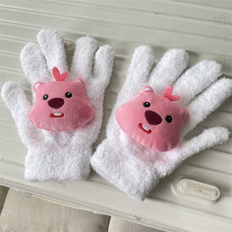 루비 봉제 장갑 여자의 가을과 겨울 학생 사이클링 따뜻한 귀여운 만화 parchal 개 비버 울 니트