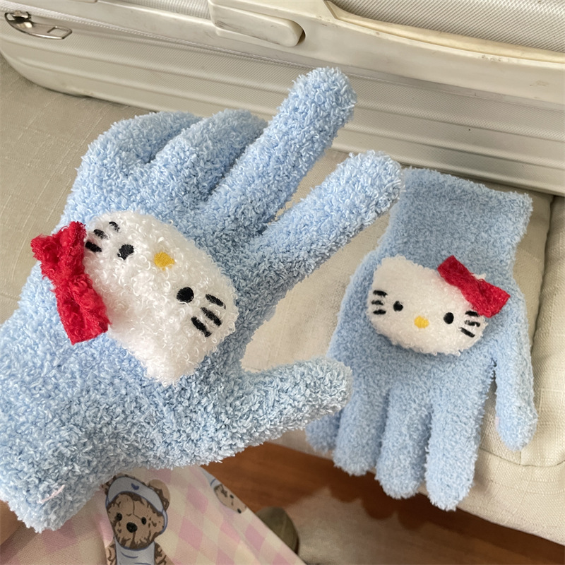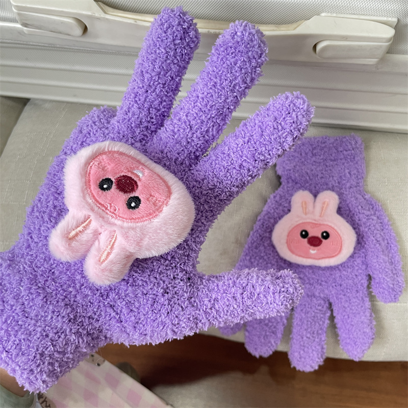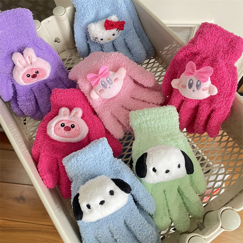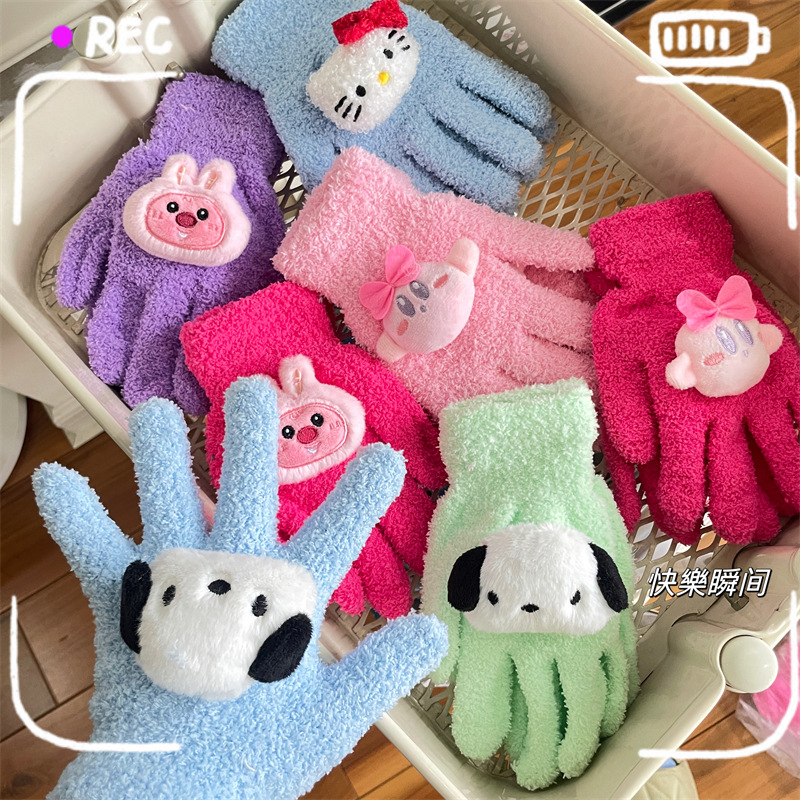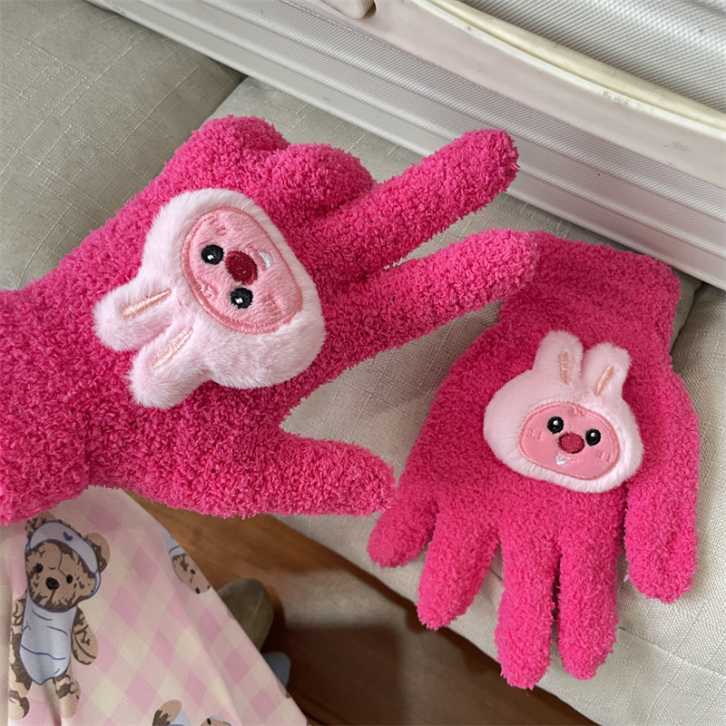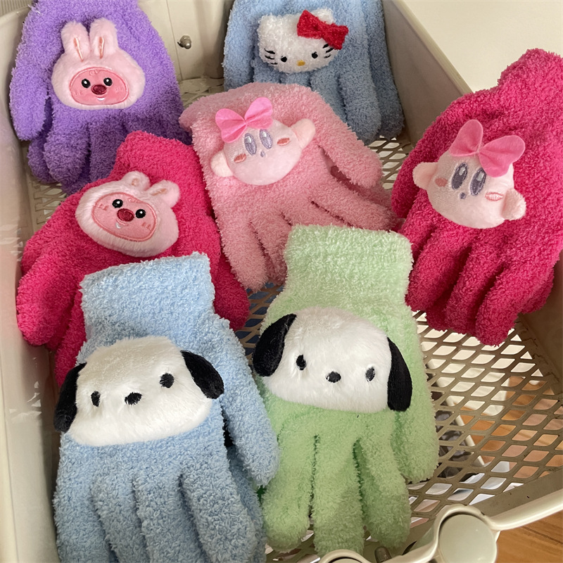 루비 봉제 장갑 여자의 가을과 겨울 학생 사이클링 따뜻한 귀여운 만화 parchal 개 비버 울 니트
