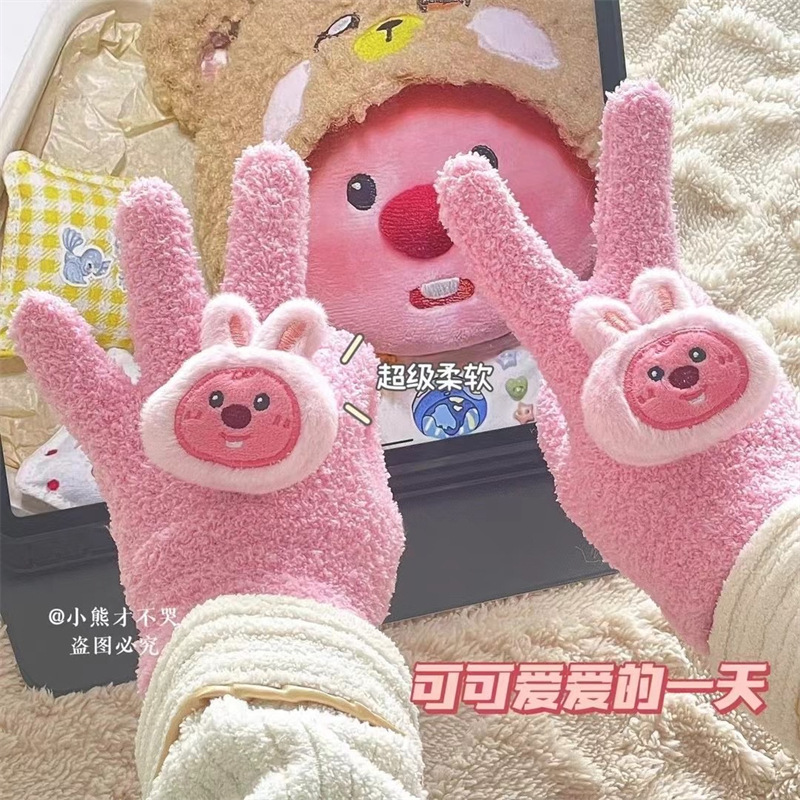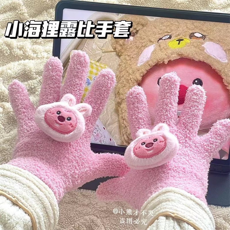 루비 봉제 장갑 여자의 가을과 겨울 학생 사이클링 따뜻한 귀여운 만화 parchal 개 비버 울 니트스토어 가기