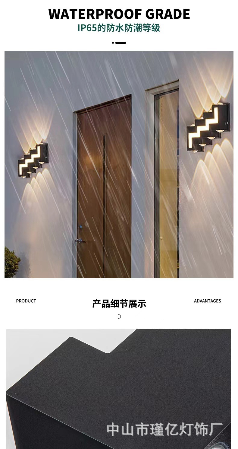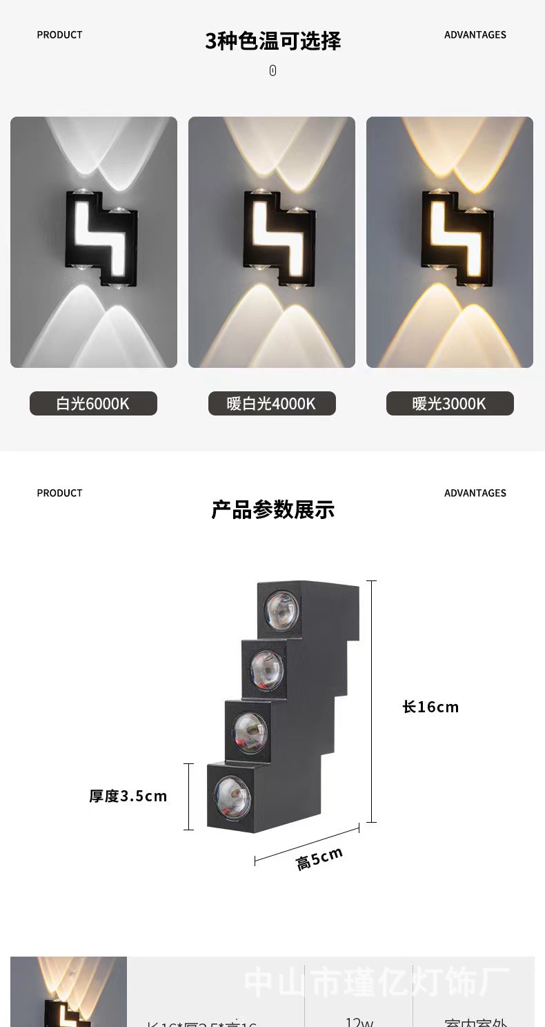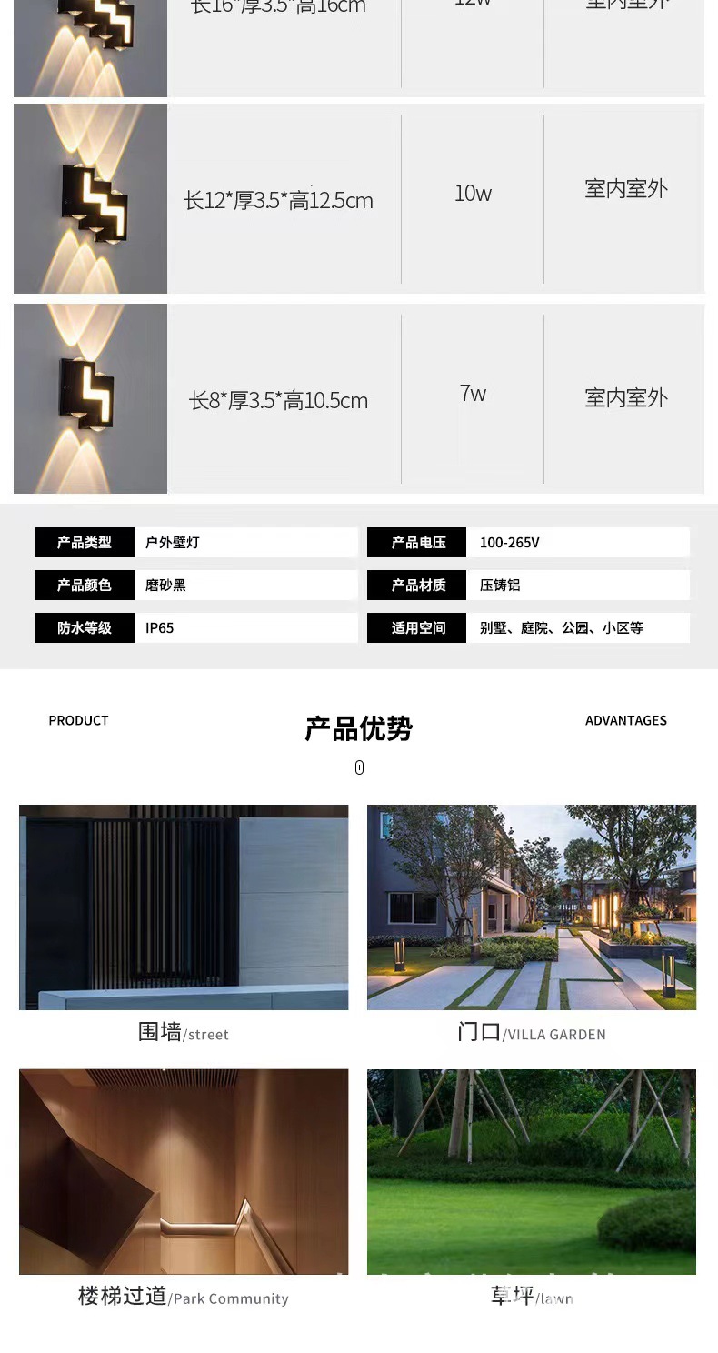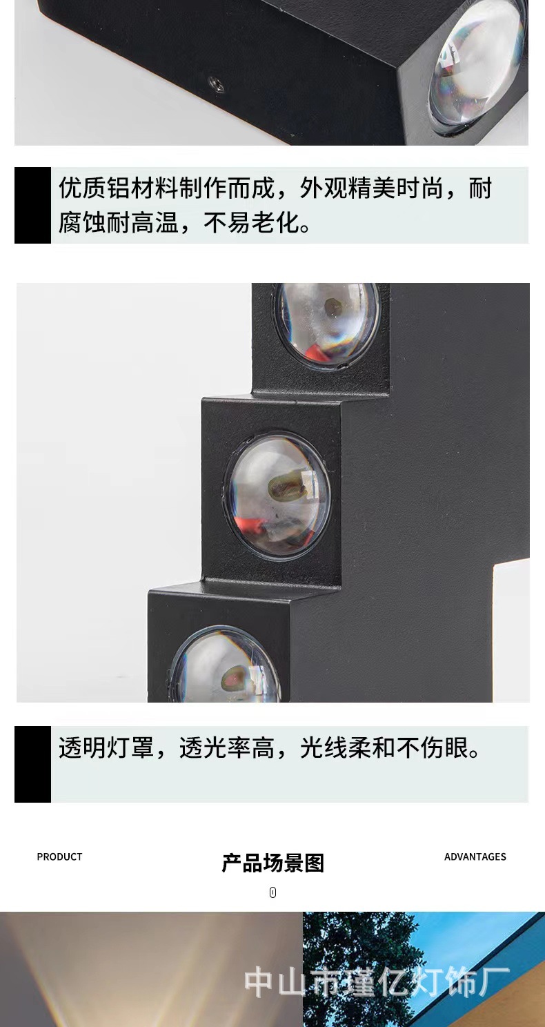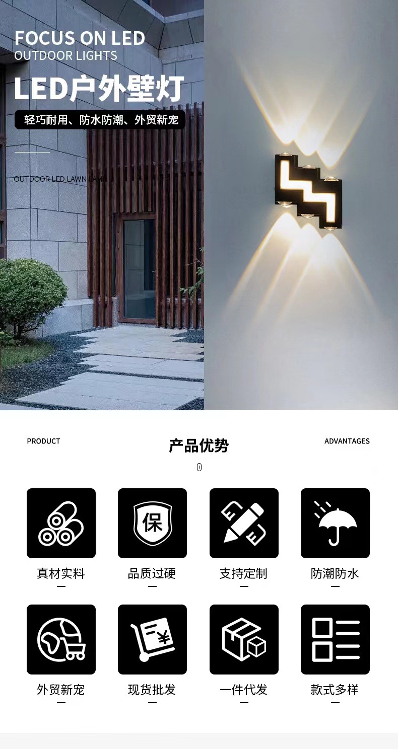 계단용 실외 벽등, 발광 외벽등, 미니멀리스트 LED 실외 조명, 양방향 정원 방수 벽등스토어 가기