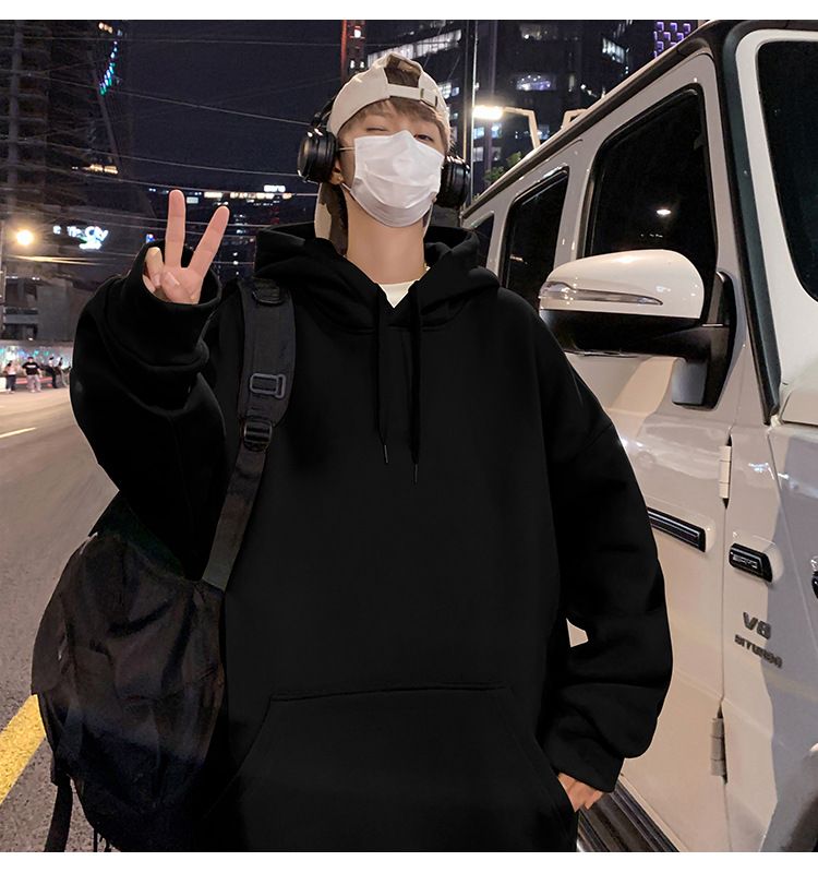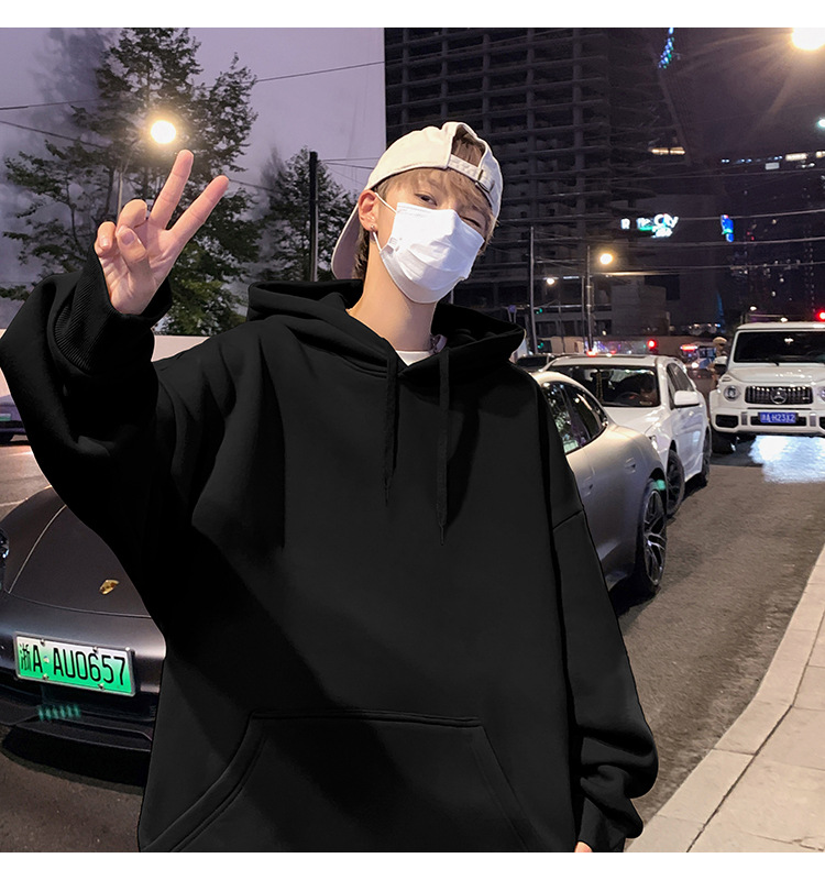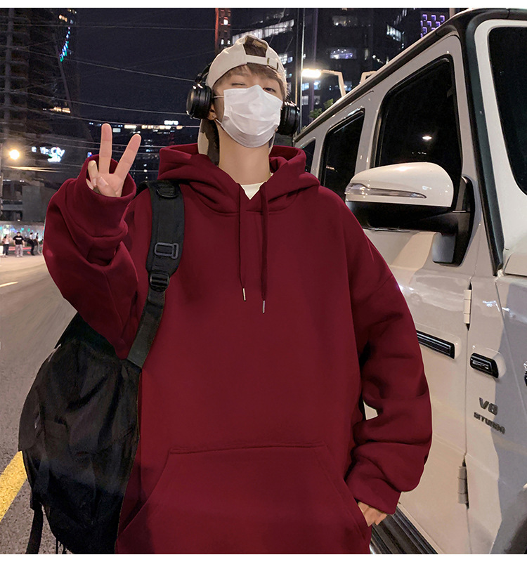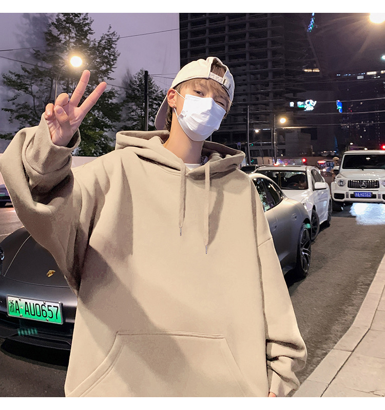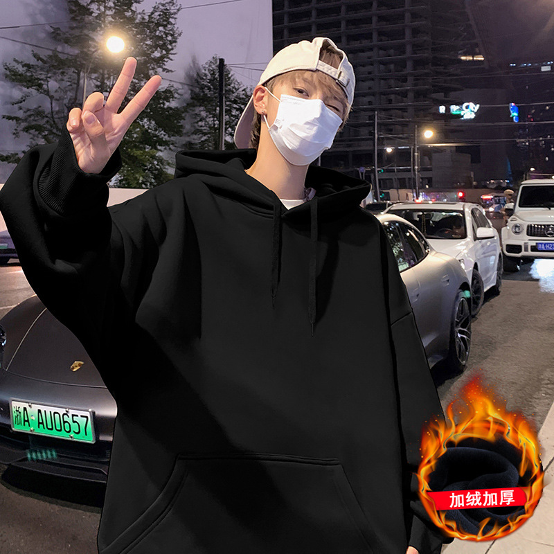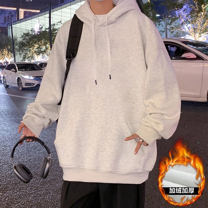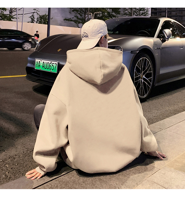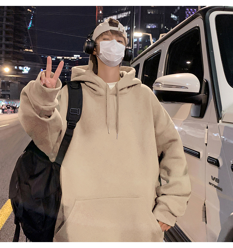 화면에 보이는 모직 소재의 두꺼운 후드티 남성용 가을 겨울 신상 홍콩 스타일 하이 스트리트 브랜드 루즈핏 후드 셔츠 자켓스토어 가기