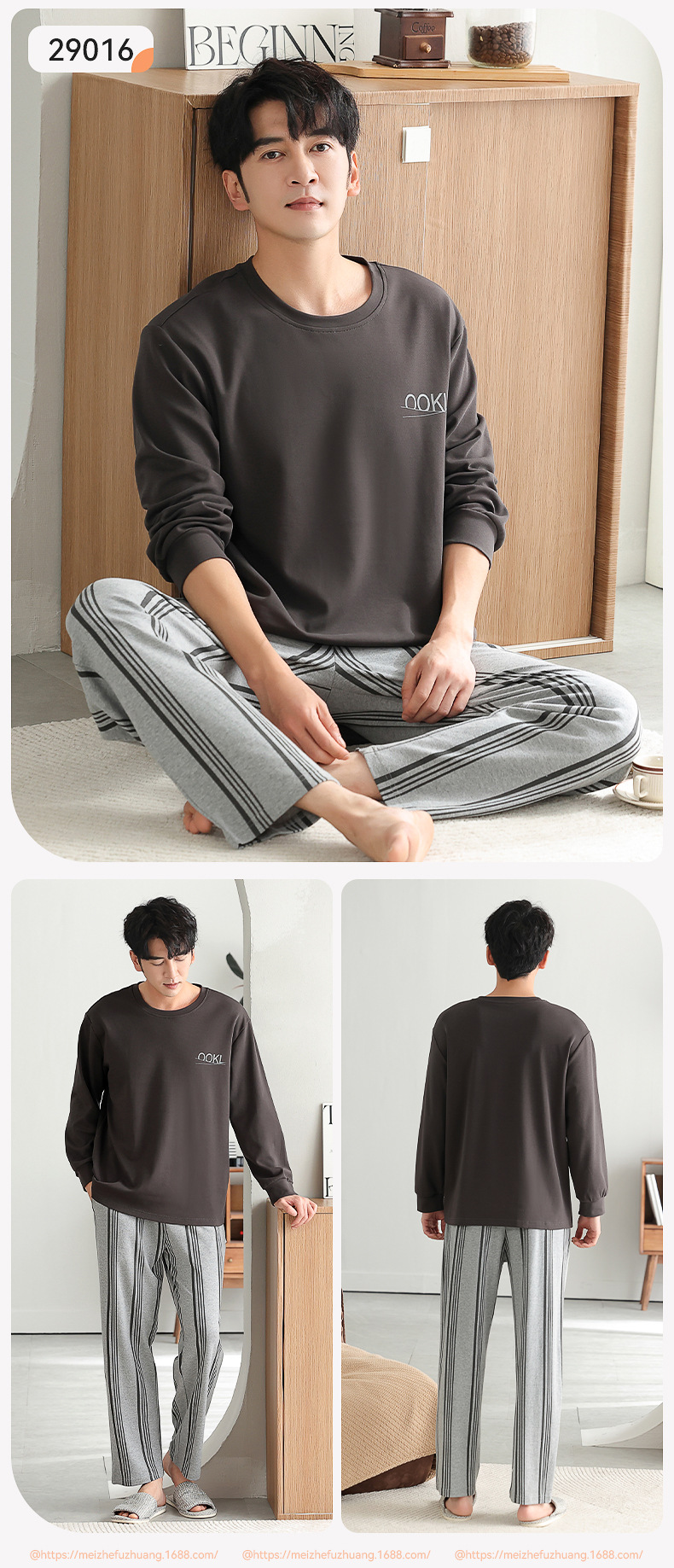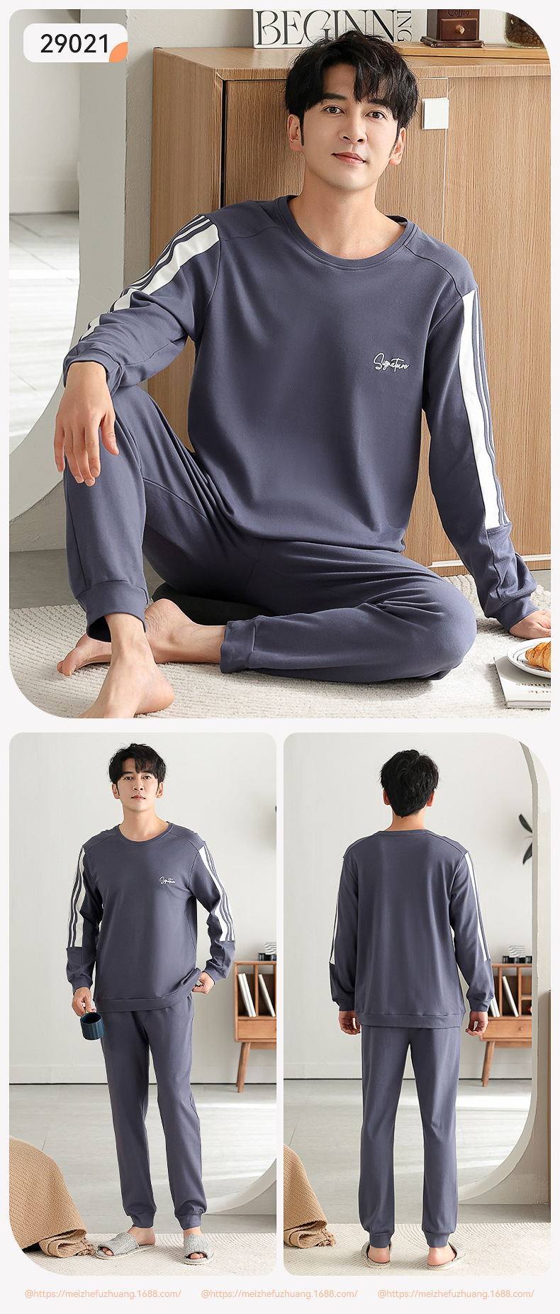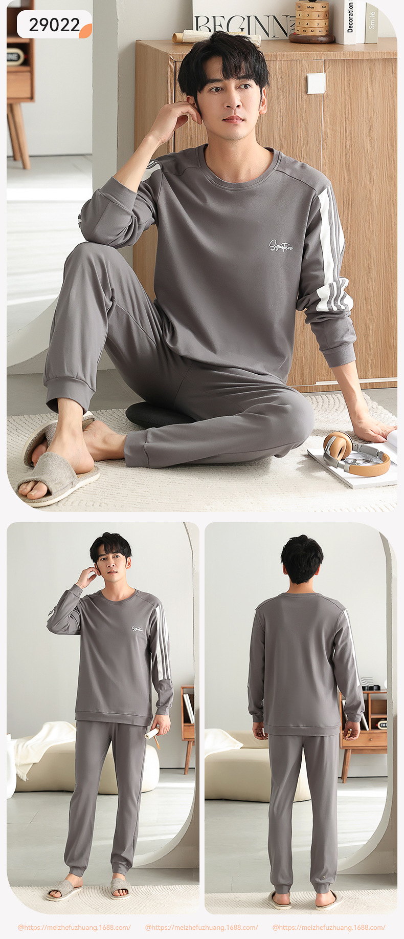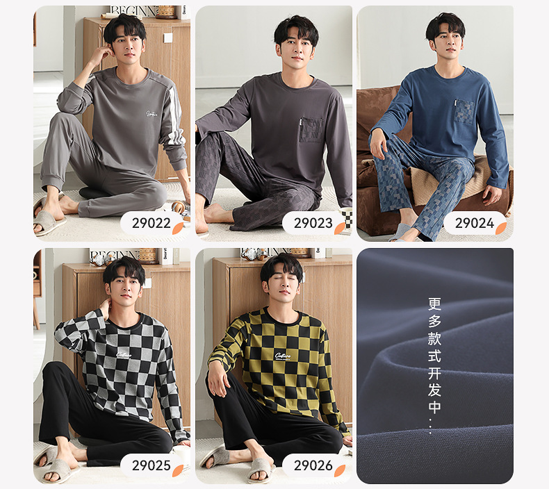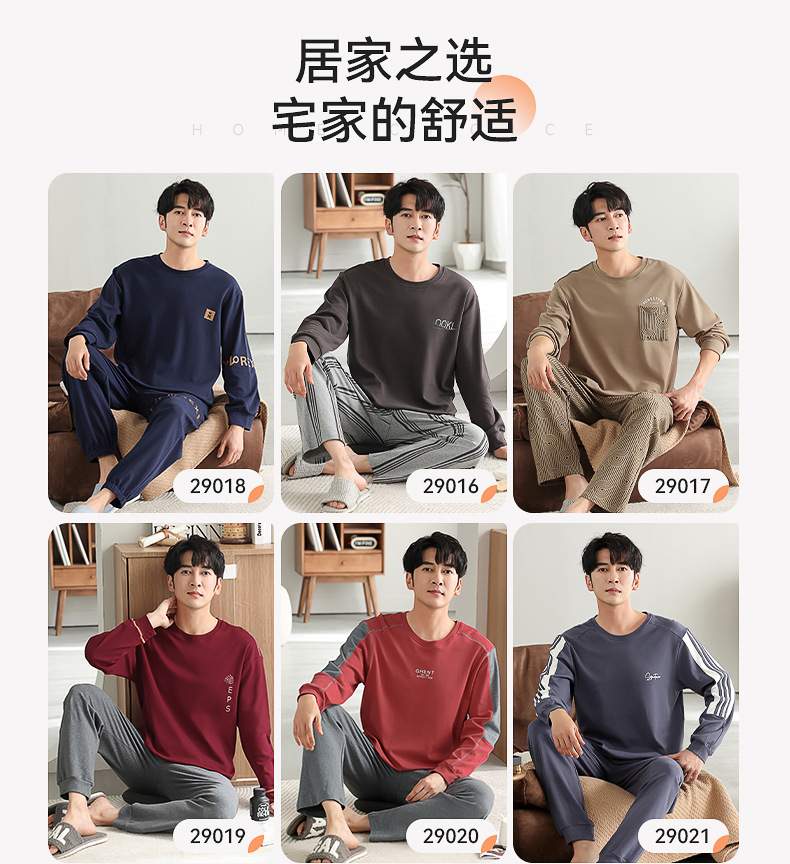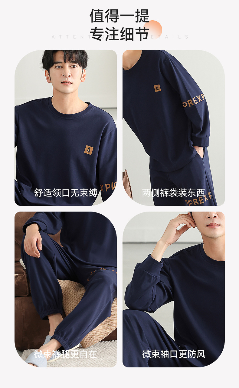 가을과 겨울 세트 순면 남성 잠옷 간단한 라운드 넥 홈 편안한 캐주얼 겉옷 긴 소매 플러스 사이즈 가정 옷스토어 가기