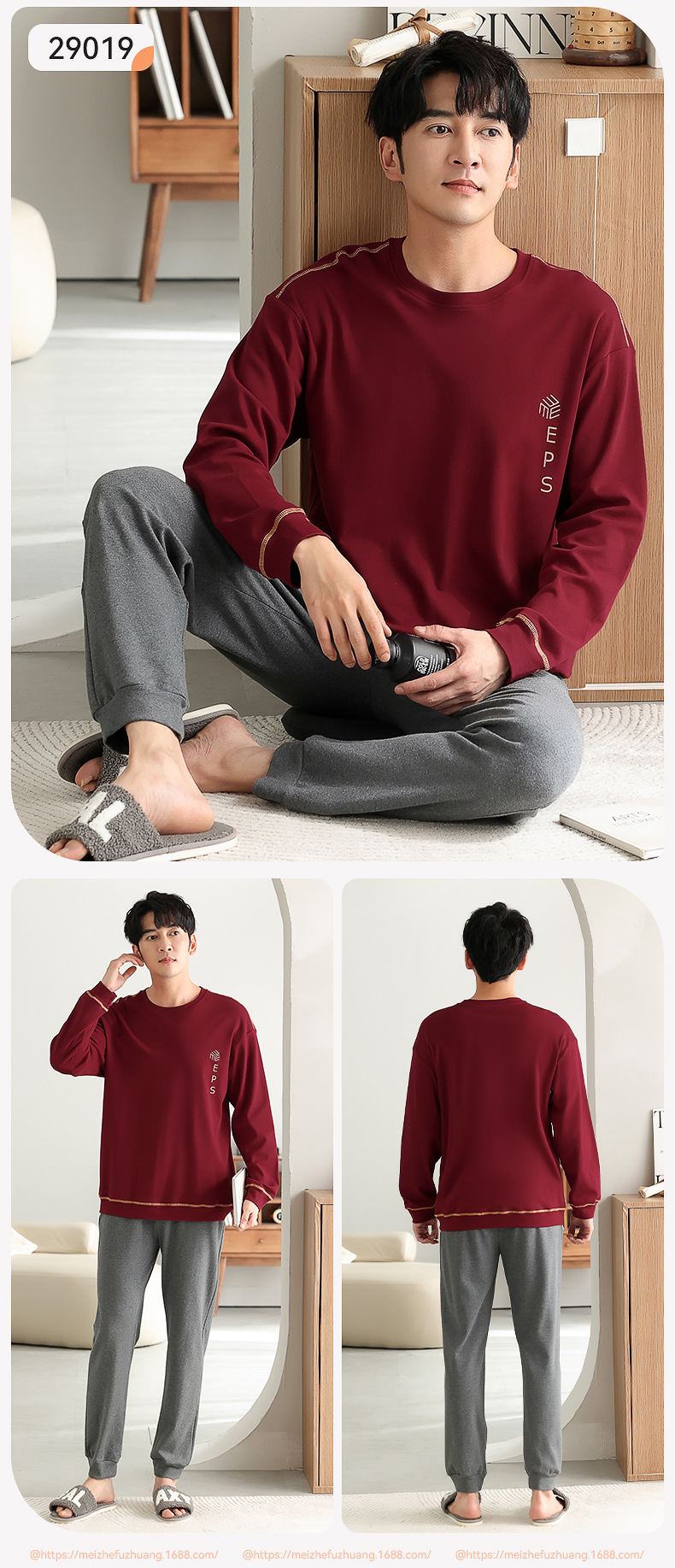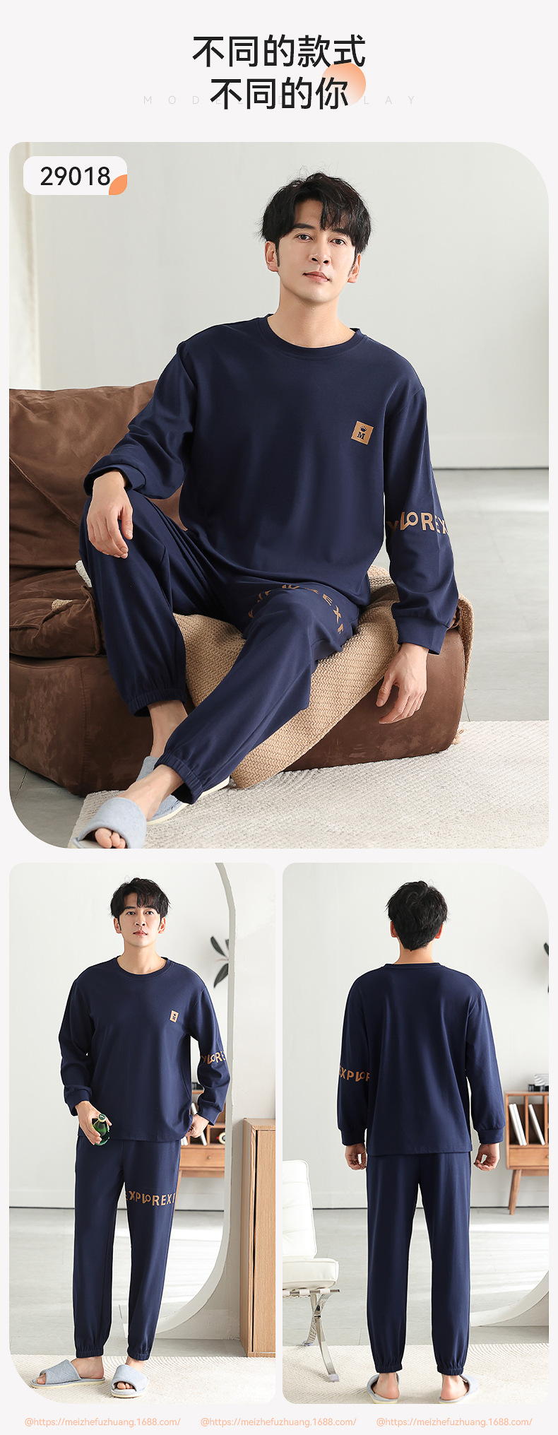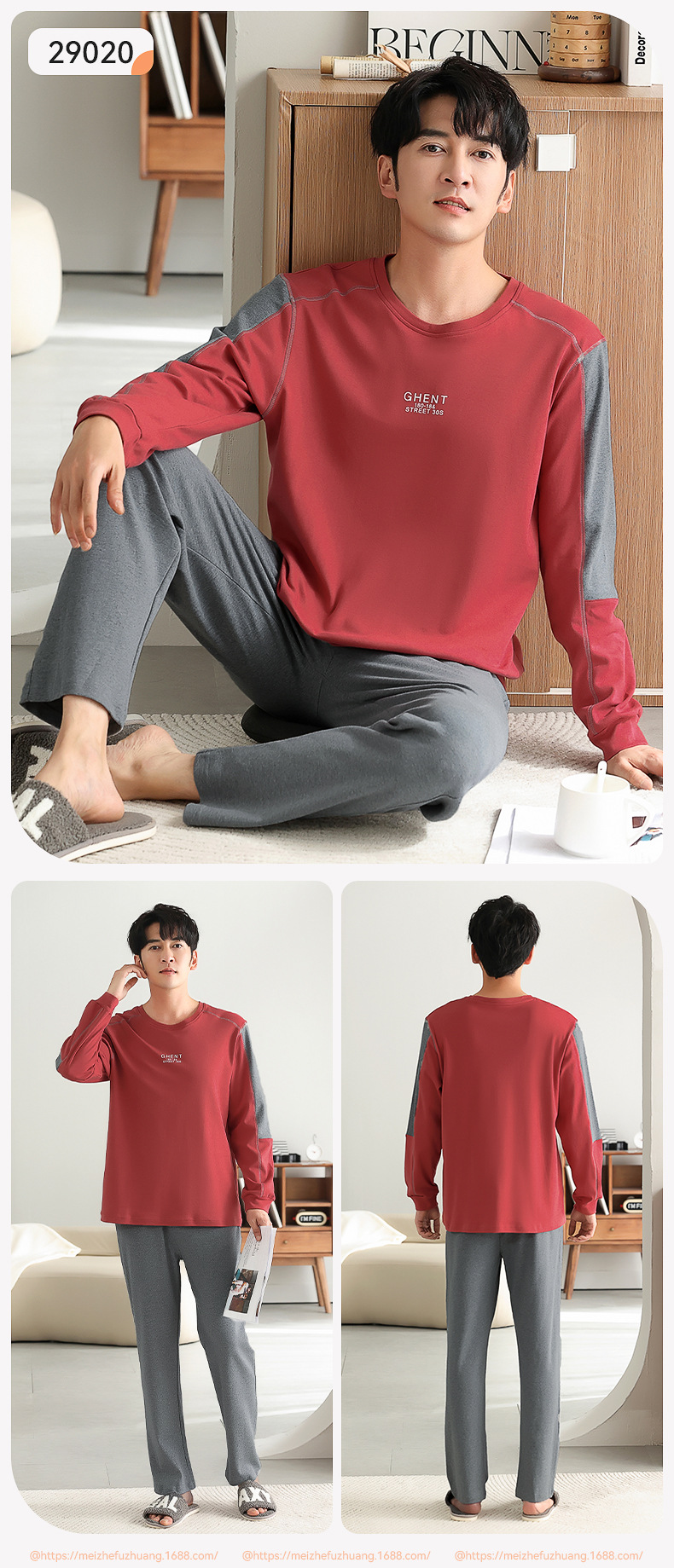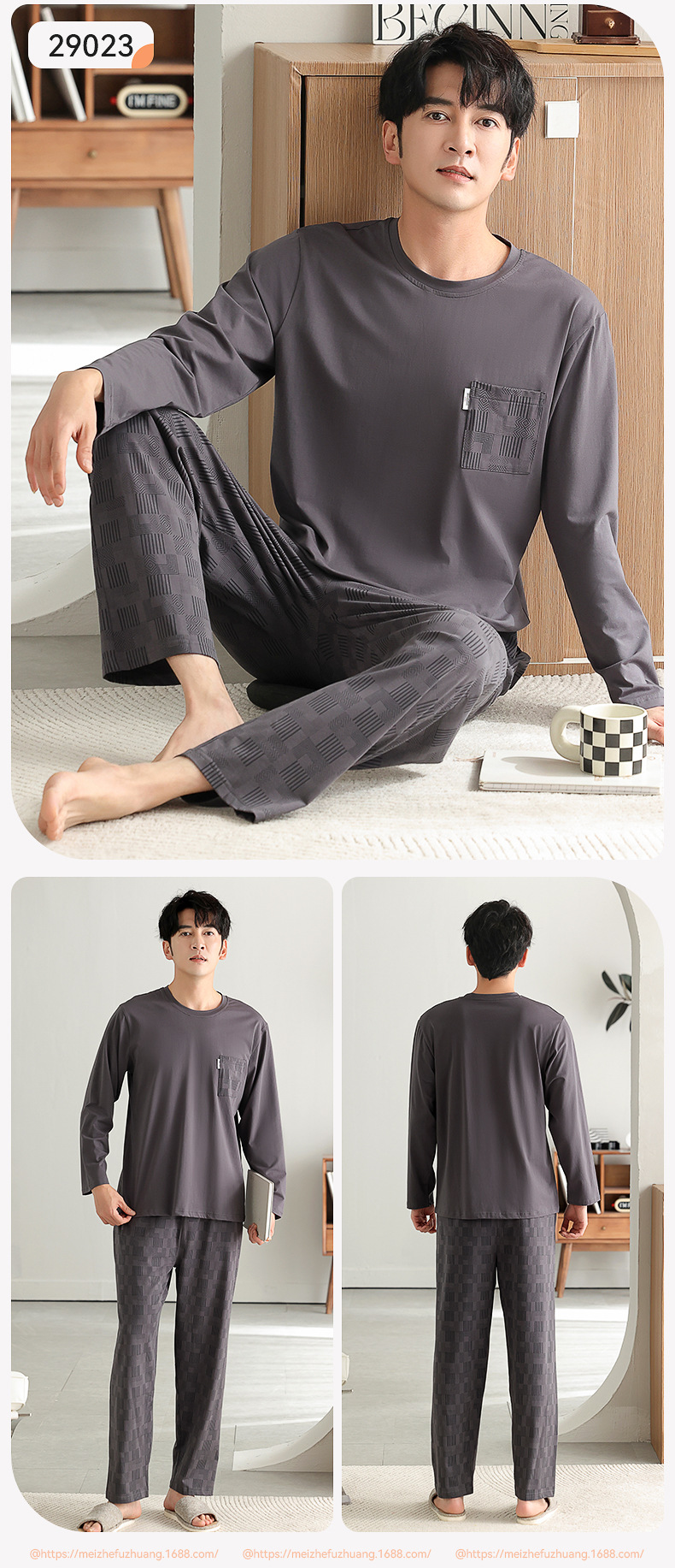 가을과 겨울 세트 순면 남성 잠옷 간단한 라운드 넥 홈 편안한 캐주얼 겉옷 긴 소매 플러스 사이즈 가정 옷스토어 가기
