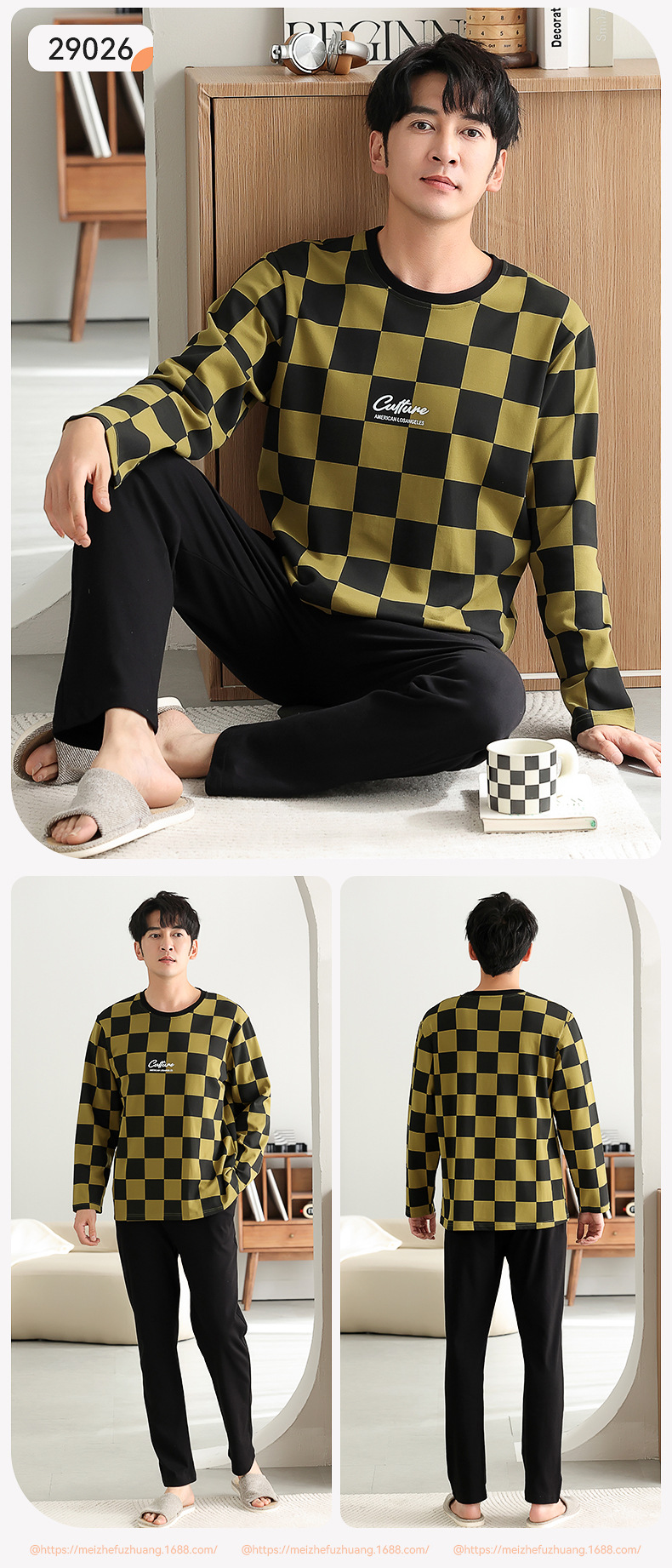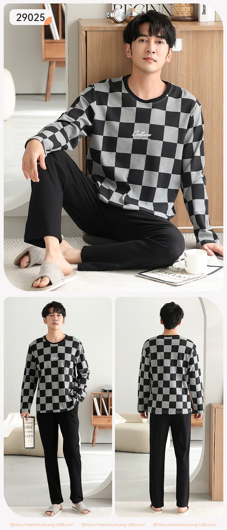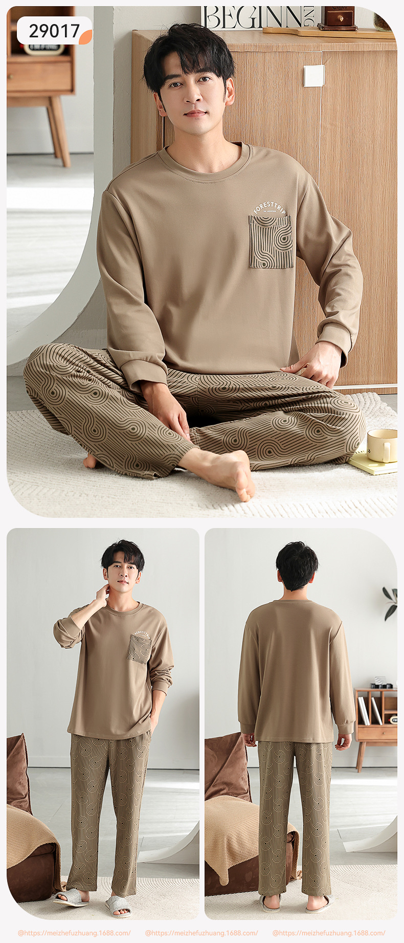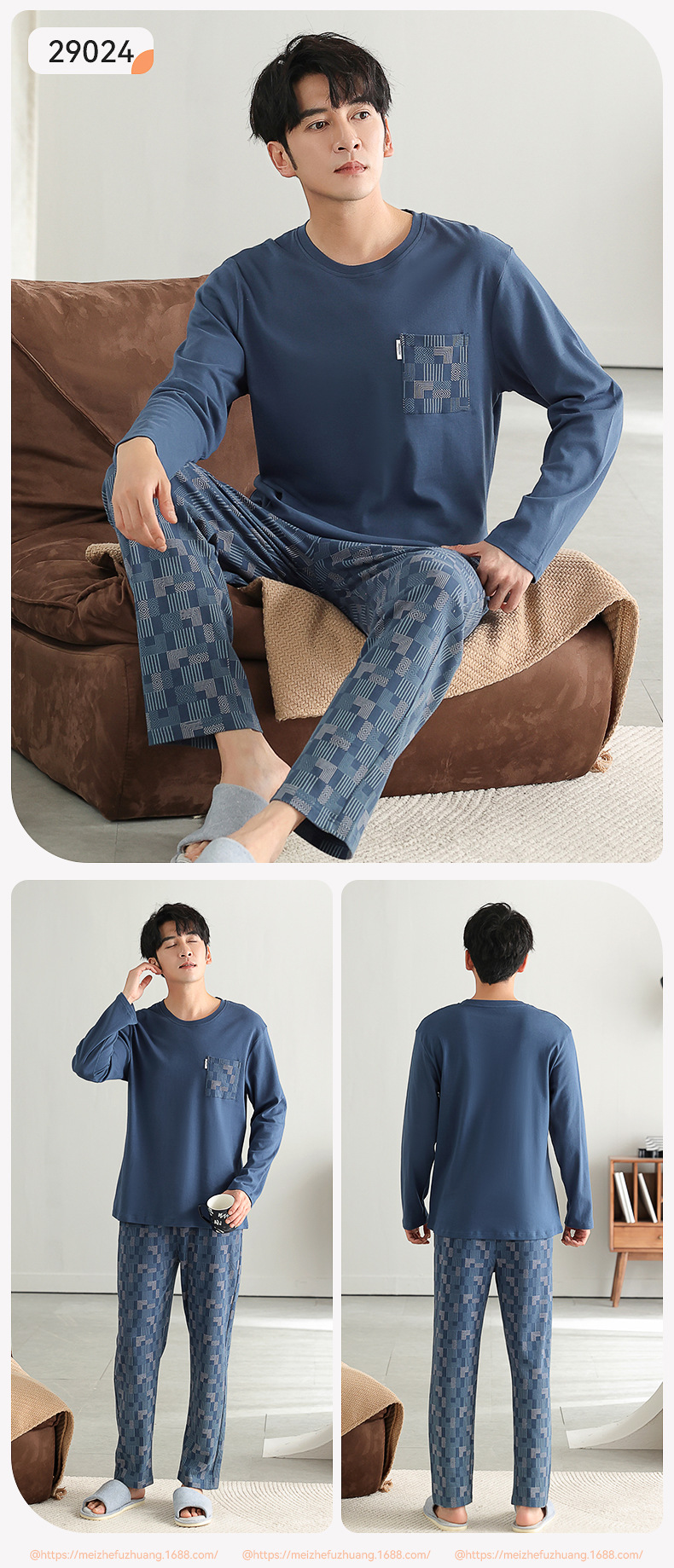 가을과 겨울 세트 순면 남성 잠옷 간단한 라운드 넥 홈 편안한 캐주얼 겉옷 긴 소매 플러스 사이즈 가정 옷스토어 가기