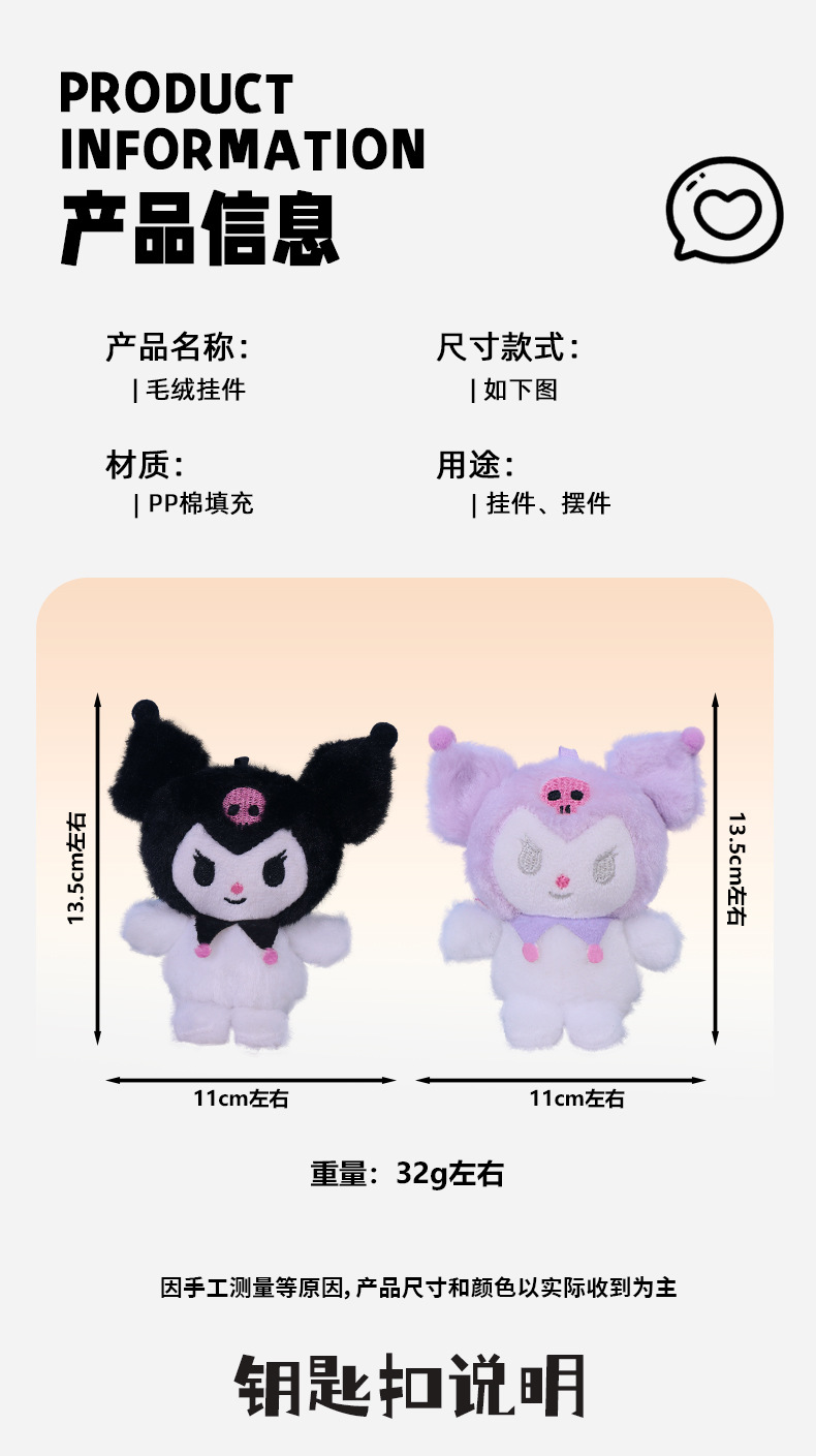 만화 산리오 악마 쿨리 미 봉제 인형 키 체인 백 펜던트 인형 잡기 인형 기계 작은 인형