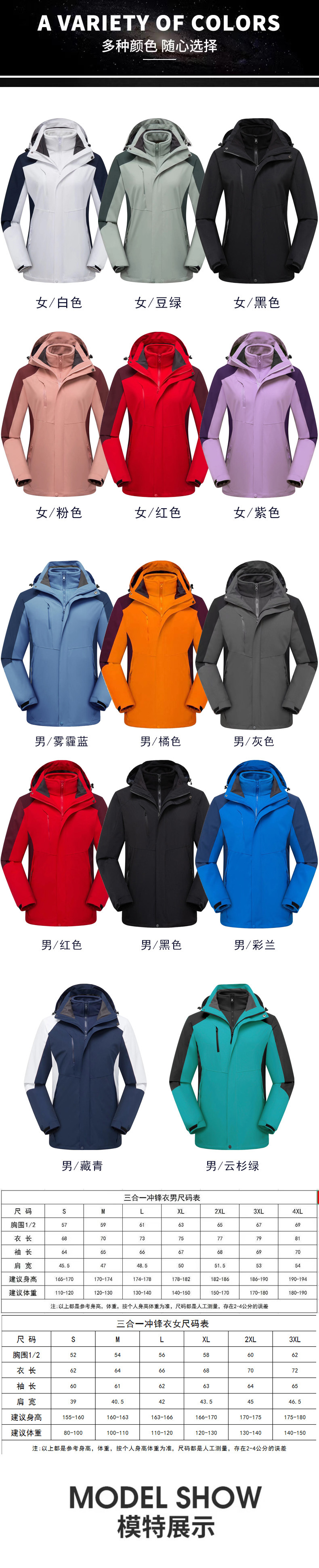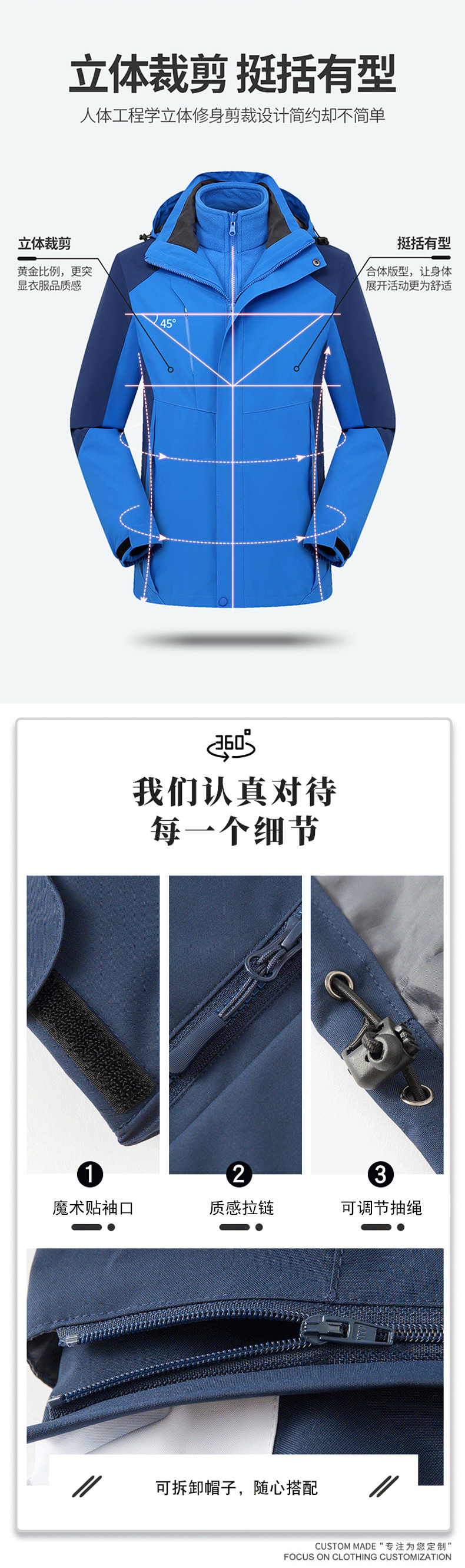 맞춤형 3-in-1 탈부착 아웃도어 작업복 가을/겨울 자켓 단체 작업복 자수 로고 인쇄 주문 제작