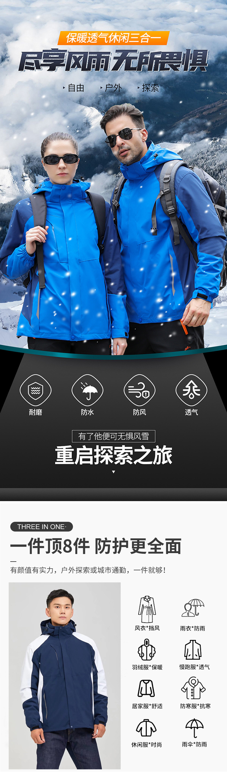 맞춤형 3-in-1 탈부착 아웃도어 작업복 가을/겨울 자켓 단체 작업복 자수 로고 인쇄 주문 제작스토어 가기
