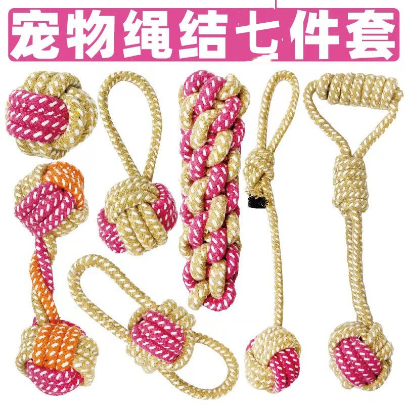 아마존 인기 애완동물 용품 강아지 면 로프 장난감 이빨 청소 강아지 씹기 로프 세트 장난감 도매