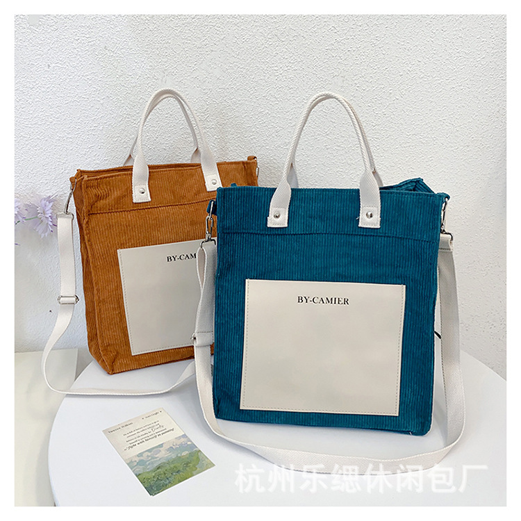 코듀로이 가방 가방 일본 대용량 2023 겨울 메일라드 핸드백 학생 예술 숄더 크로스바디 백스토어 가기