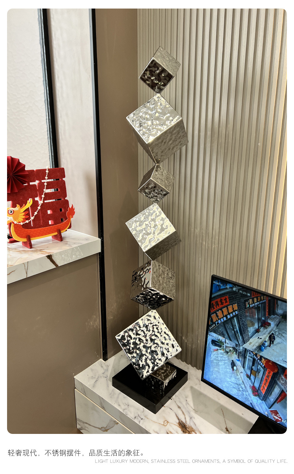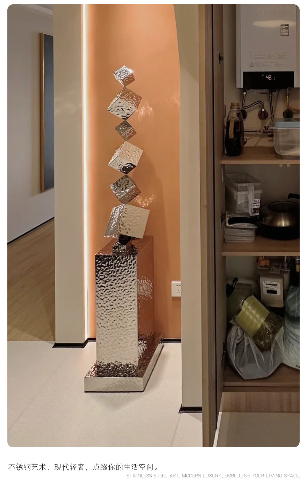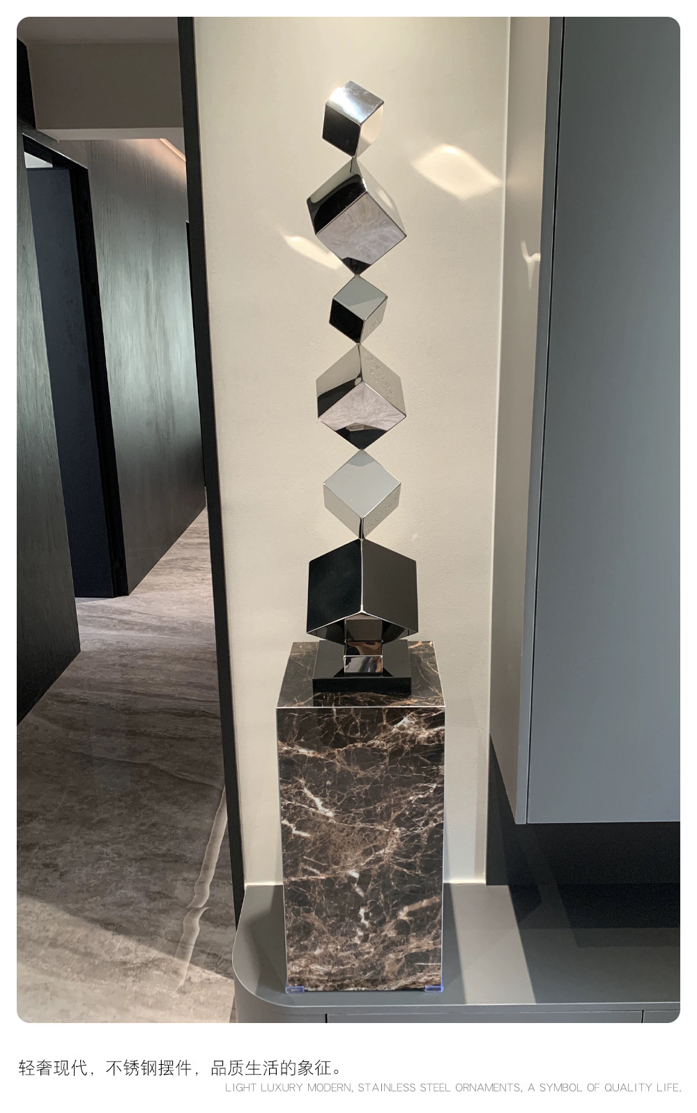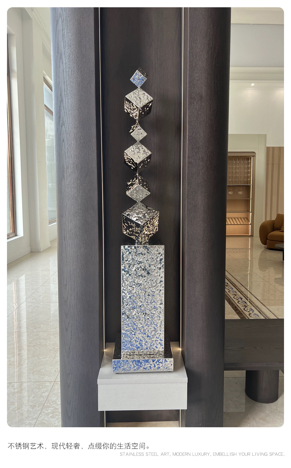 간단한 빛 럭셔리 스테인레스 스틸 조각 바닥 모델 룸 거실 부드러운 장식 장식 호텔 복도 예술 대형 장식품스토어 가기