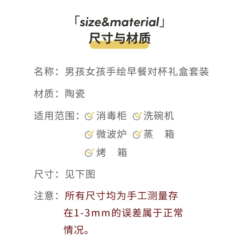 • 소년과 소녀 손으로 그린 아침 식사 컵 선물 상자 세트