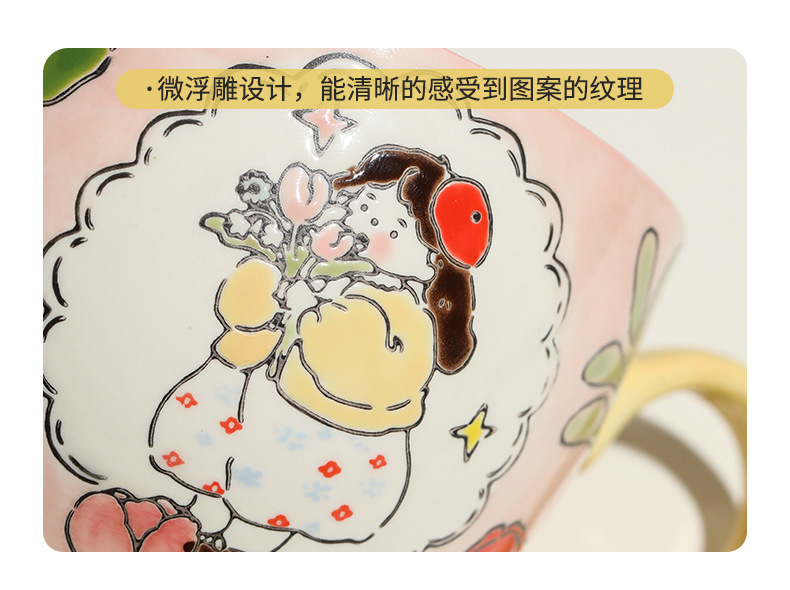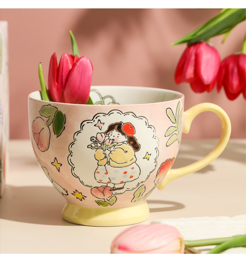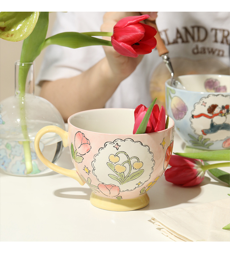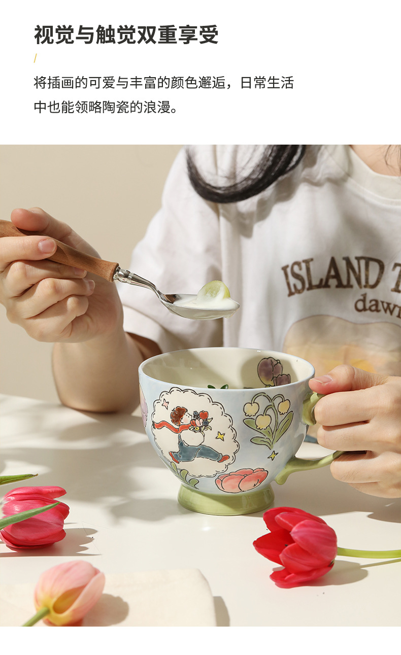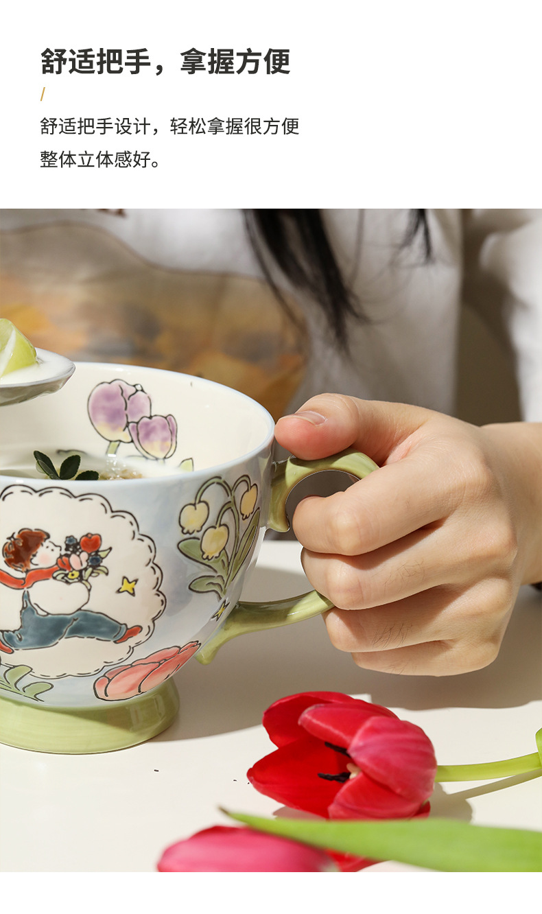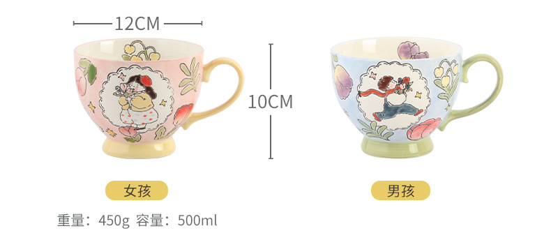 손으로 그린 아침 식사 컵 선물 상자 세트 세라믹 머그잔 연인 컵 창조적 인 연인
