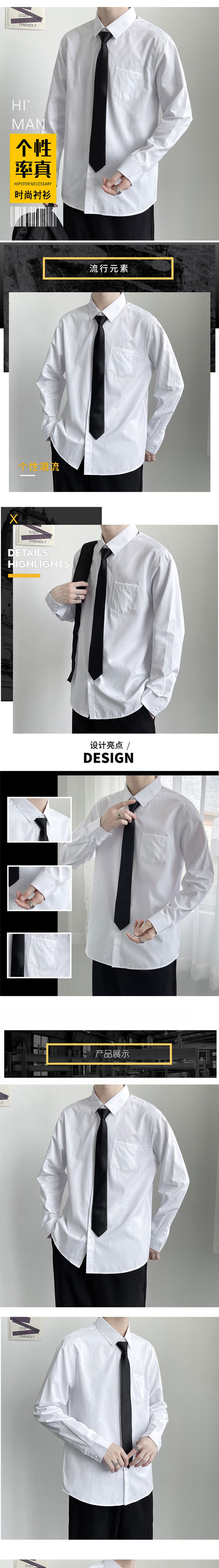 흰색 긴 소매 셔츠 남자의 일본 패션 브랜드 튀김 거리 패션 넥타이 커플 dk 유니폼 느슨한 단색 셔츠