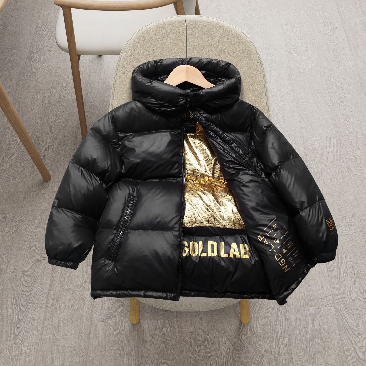 25가지 신상 아동용 보온 블랙 골드 다운 코튼 재킷 남아 여아 중대형 아동용 두꺼운 유아복 겨울용 코트